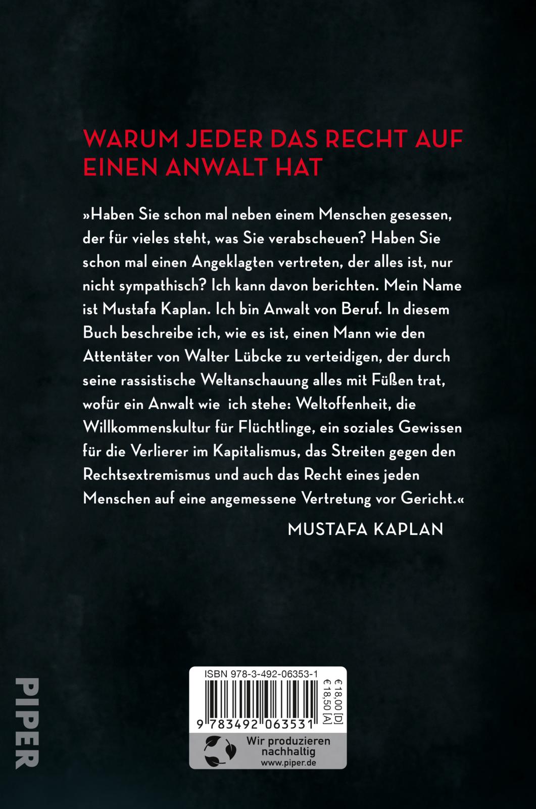 In diesem Buch schildert Mustafa Kaplan das Prozessgeschehen hinter den Kulissen, gewährt überraschende Einblicke in die Gespräche mit seinem Mandanten, beschreibt die Schlüsselmomente in dem spektakulären Verfahren und die kriminalistische Spurensuche, die ein politisch motiviertes Attentat erst erklärt.