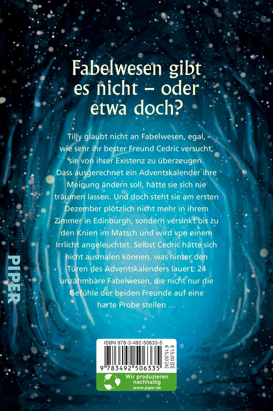 Tilly glaubt nicht an Fabelwesen, egal, wie sehr ihr bester Freund Cedric versucht, sie von ihrer Existenz zu überzeugen. Dass ausgerechnet ein Adventskalender ihre Meinung ändern soll, hätte sie sich nie träumen lassen. Und doch steht sie am ersten Dezember plötzlich nicht mehr in ihrem Zimmer in Edinburgh, sondern versinkt bis zu den Knien im Matsch und wird von einem Irrlicht angeleuchtet. Nicht einmal Cedric hätte sich ausmalen können, was hinter den Türen des Adventskalenders lauert: 24 unzähmbare Fabelwesen, die nicht nur die Gefühle der beiden Freunde auf eine harte Probe stellen ...