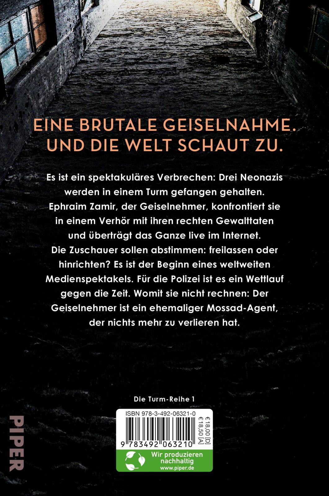 | Schlagworte | actionreich • Buch • Entführer • Geiselnahme • Geschenk für Männer • Gesellschaftsthriller • Hinrichtung • Hochbunker • Judenhass • Justiz-Thriller • Medien • Mossad • Neonazis • Politik • Politthriller Bücher • rasant • Rechter Terror • Rechtsradikale • Social Media • spannend • Thriller • Turmgold • Turm-Reihe |