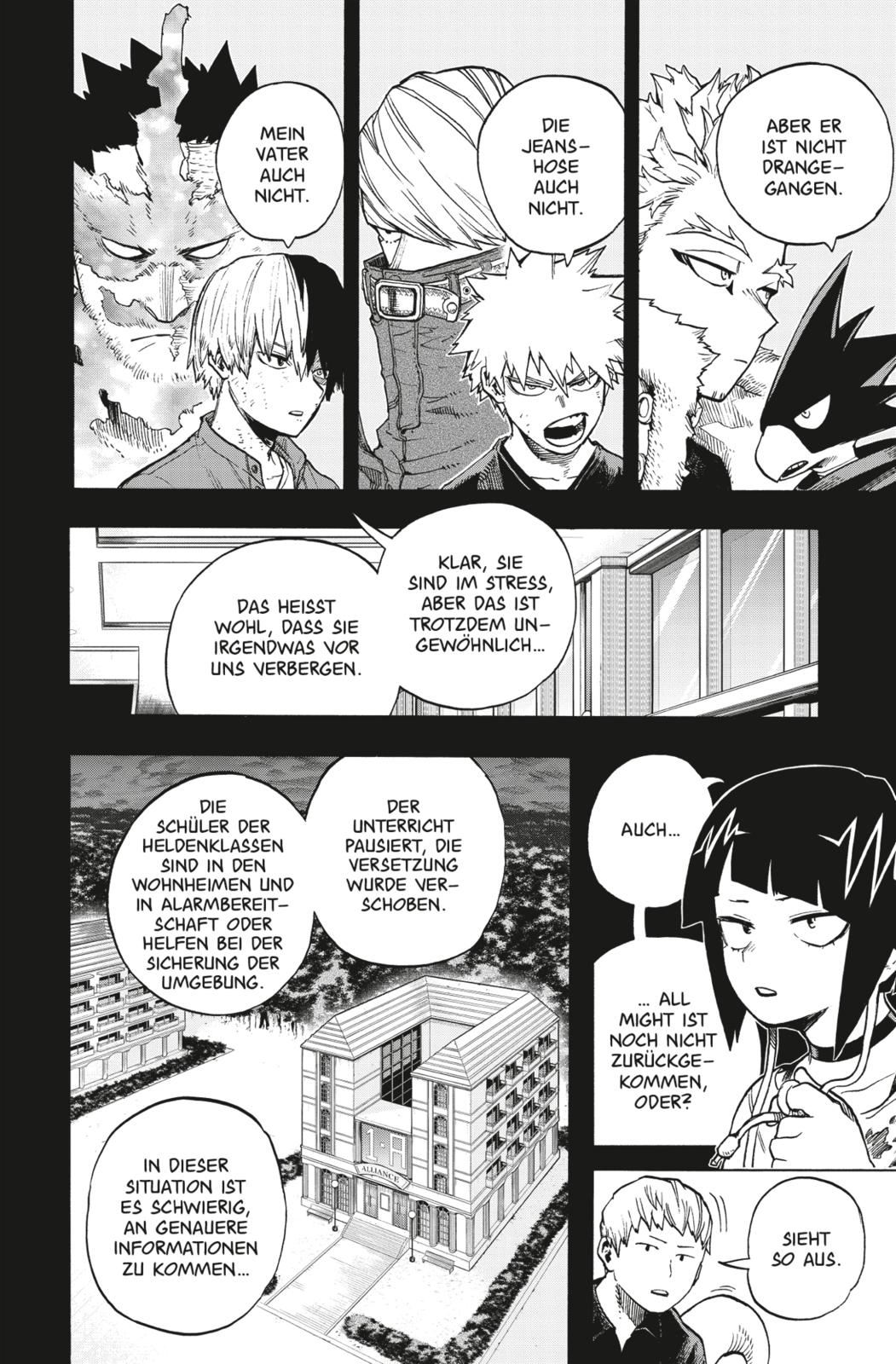 Die Schüler sind verunsichert, weil das Vertrauen in die Helden erschüttert ist, und deshalb müssen wir Lehrer sie mit all unserer Kraft beschützen! Die U.A. ist ein Ort, an den man jederzeit unbesorgt zurückkehren kann. Auf! Lasst ihn eure Stimmen hören! Übermittelt ihm eure Gefühle!