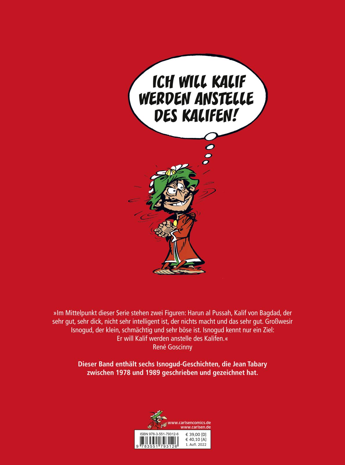 Dieser Sammelband enthält die Abenteuer von Jean Tabary aus den Jahren 1978-1987: »Isnoguds Kindheit«, »Isnogud und die Frauen«, »Isnoguds Komplize«, und »Isnoguds Geburtstag«. Zudem enthält der Band bislang unveröffentlichtes Material und ein umfangreiches Vorwort.