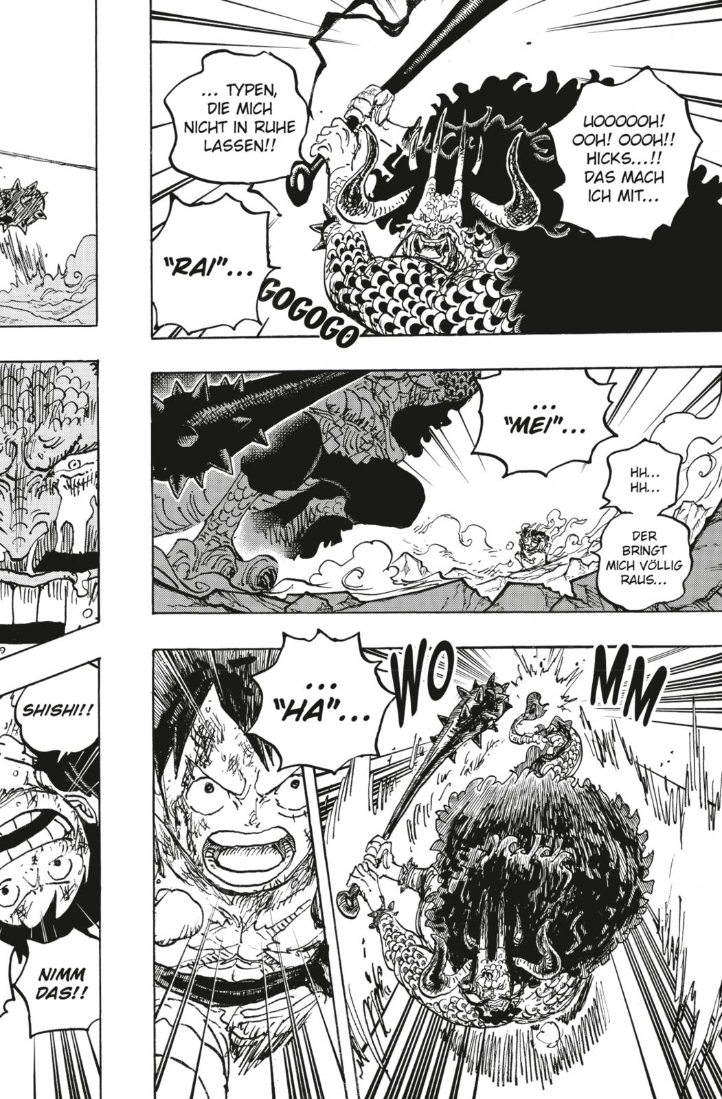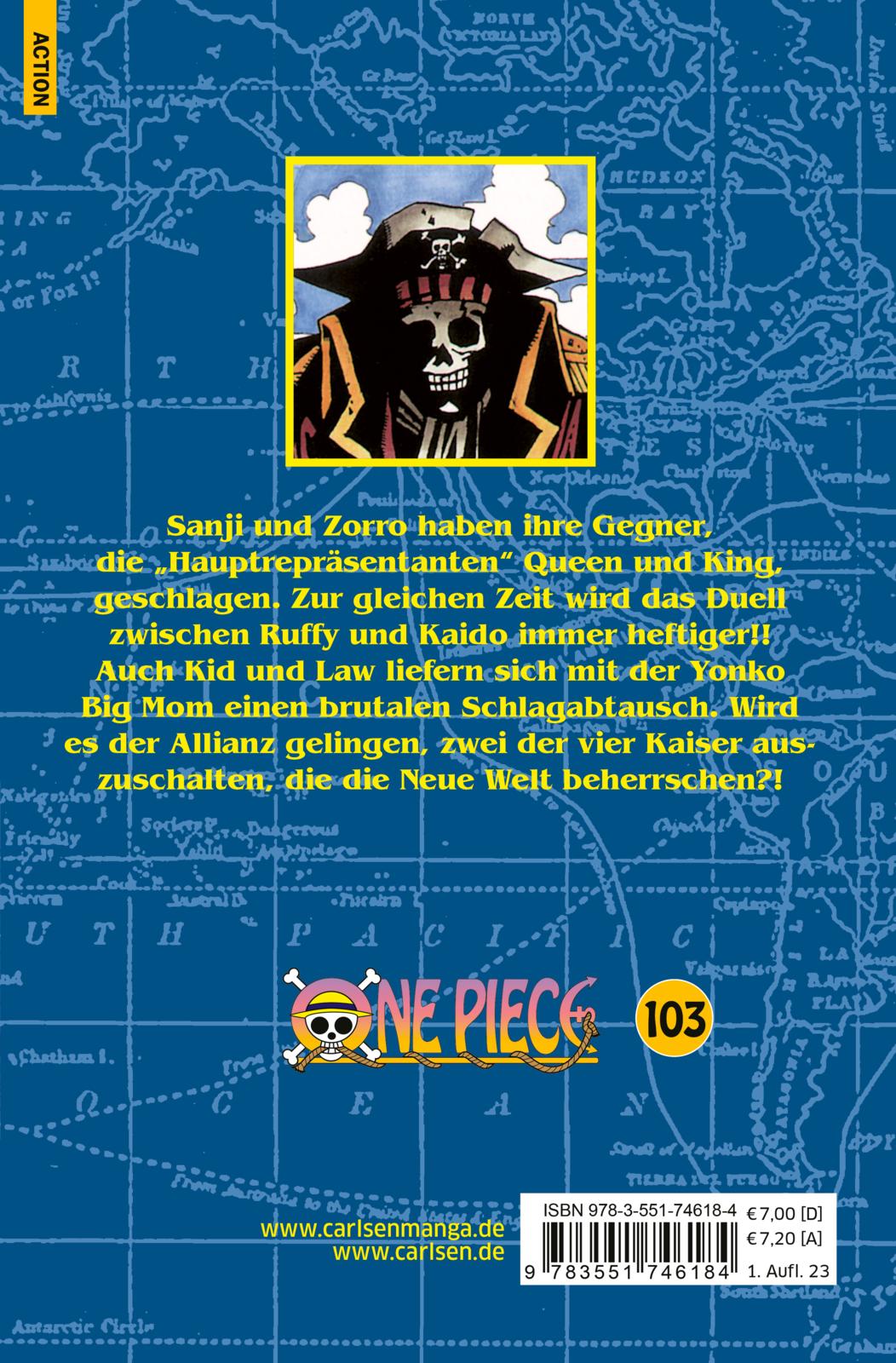 Sanji und Zorro haben ihre Gegner, die "Hauptrepräsentanten" Queen und King, geschlagen. Zur gleichen Zeit wird das Duell zwischen Ruffy und Kaido immer heftiger!! Auch Kid und Law liefern sich mit der Yonko Big Mom einen brutalen Schlagabtausch. Wird es der Allianz gelingen, zwei der vier Kaiser auszuschalten, die die Neue Welt beherrschen?!