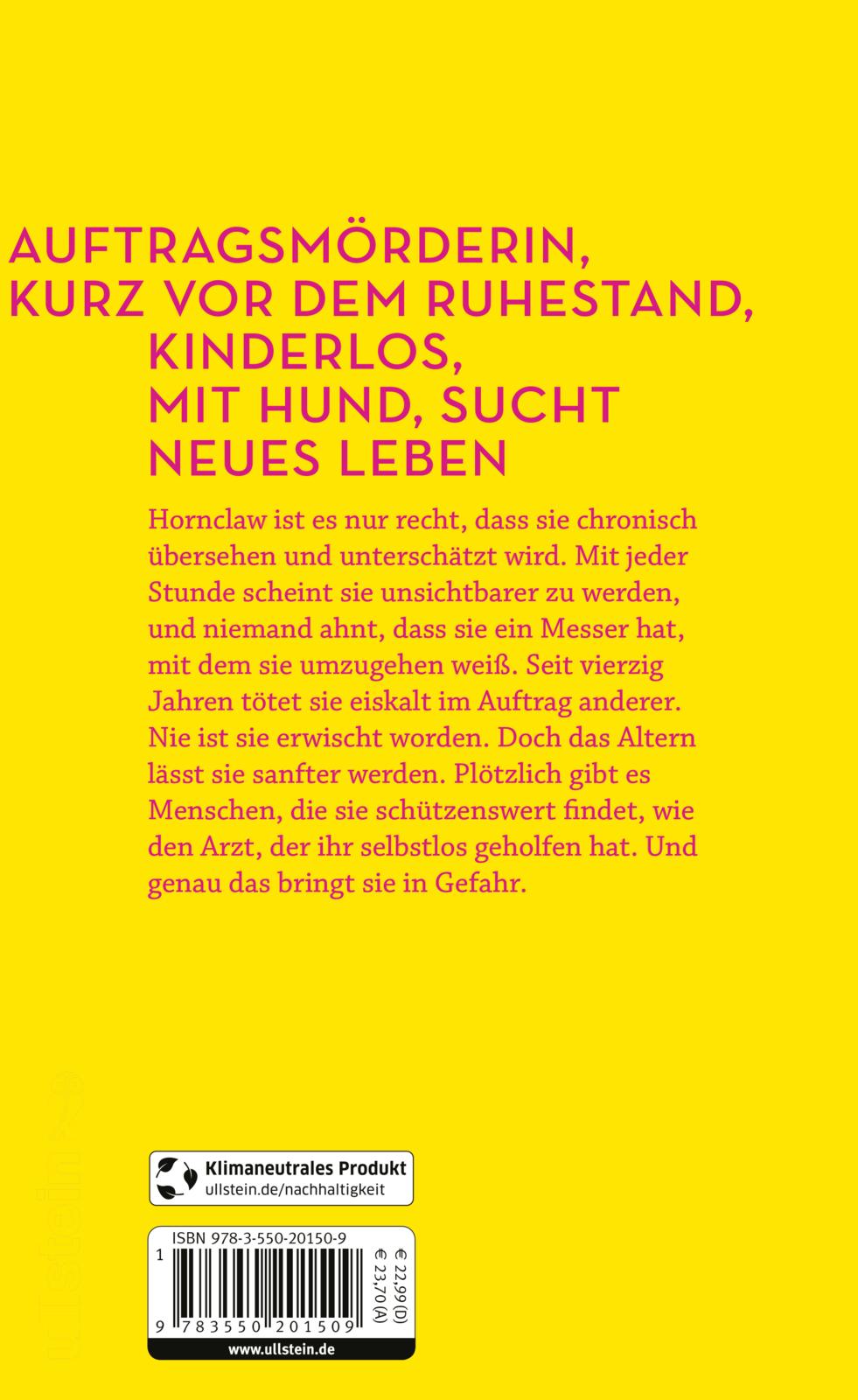 Als Auftragsmörderin ist es Hornclaw nur recht, dass sie chronisch übersehen und unterschätzt wird. Mit jeder Stunde scheint sie unsichtbarer zu werden, und niemand ahnt, dass sie ein Messer hat, mit dem sie umzugehen weiß. Seit 40 Jahren tötet sie eiskalt im Auftrag anderer. Immer ist sie entkommen. Doch das Altern lässt sie ein wenig softer werden. Plötzlich gibt es Menschen, die sie schützenswert findet, und das, nachdem sie genau das ihr Leben lang vermieden hat. Und kaum ist das Visier unten, nehmen ihre Verfolger ihre Spur auf.