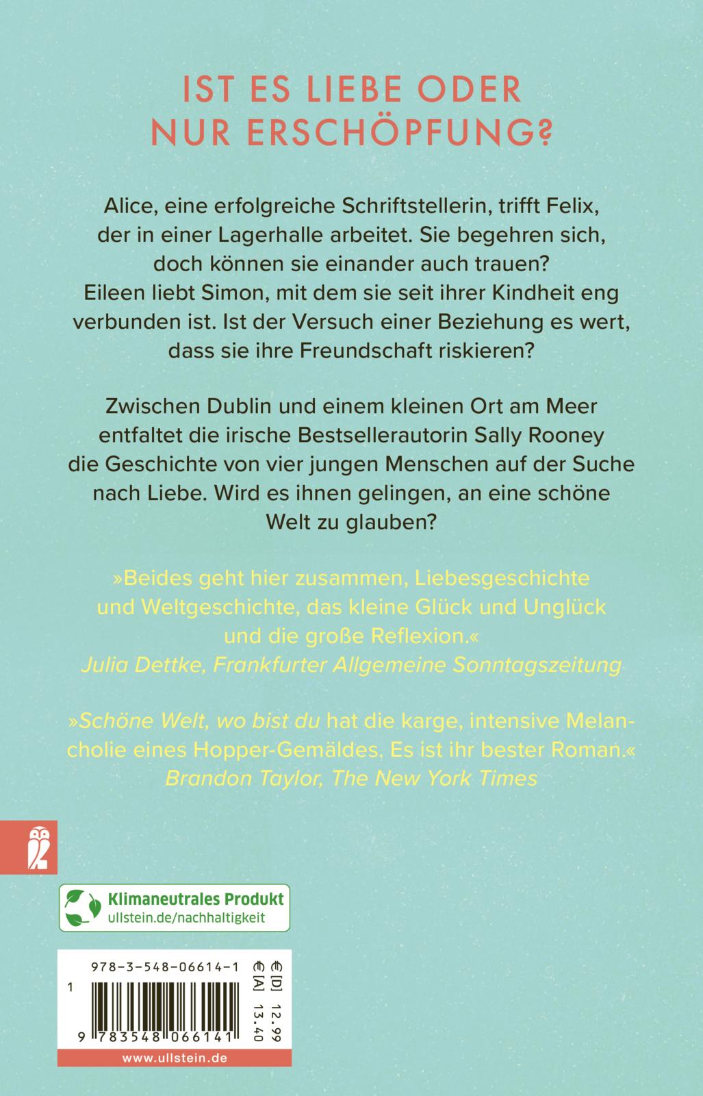 Zwischen Dublin und einem kleinen Ort an der irischen Küste entfaltet Sally Rooney eine Geschichte von vier jungen Menschen, die sich nahe sind, die einander verletzen, die sich austauschen: über Sex, über Ungleichheit und was sie mit Beziehungen macht, über die Welt, in der sie leben. Schöne Welt, wo bist du ist eine universelle Geschichte über den Raum zwischen Alleinsein und Einsamkeit und über die Freiheit, sein Leben mit anderen zu teilen - überwältigend klug, voller Klarheit und Trost.