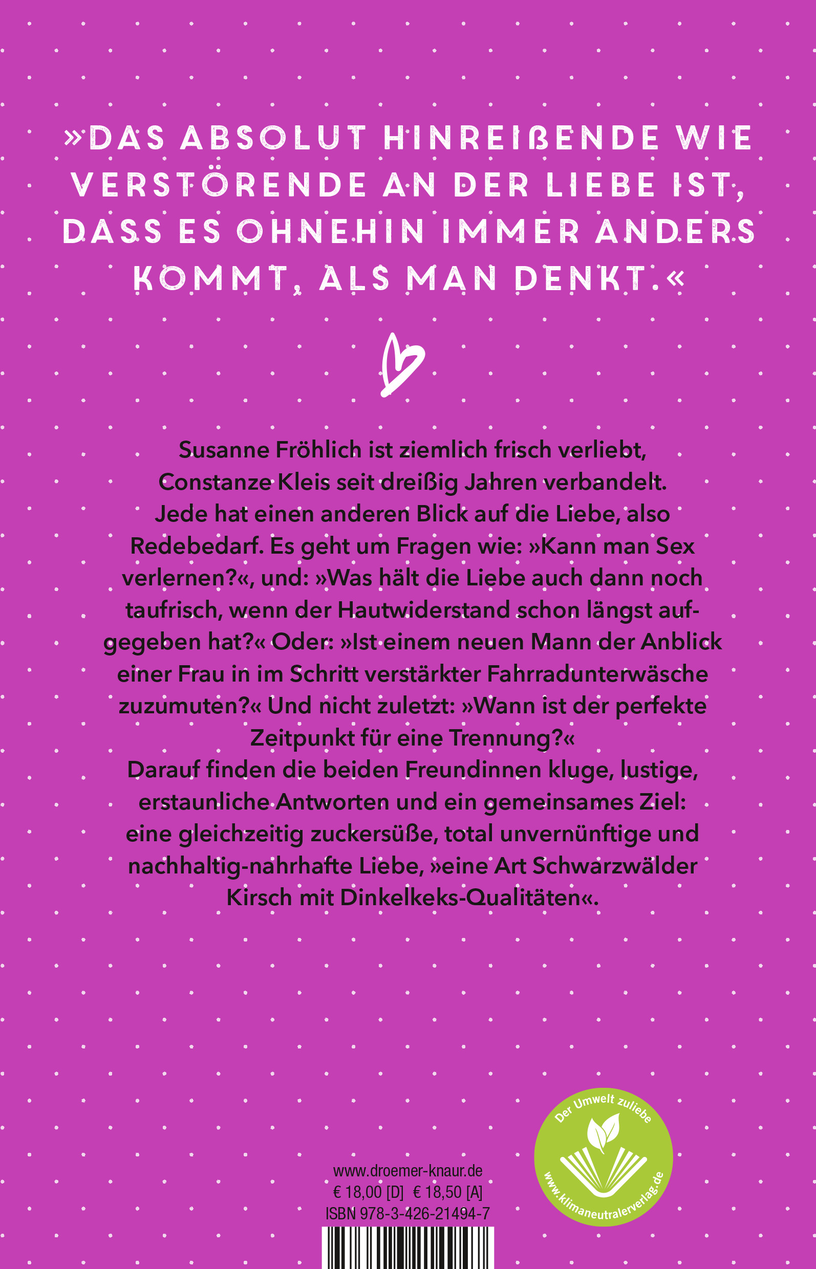 Witzig, unverfroren, herzlich: Die beliebten Beststellerautorinnen Susanne Fröhlich und Constanze Kleis blicken mit individuellen Perspektiven auf das Thema Liebe - auf die Glücksmomente ebenso wie auf die Schattenseiten.