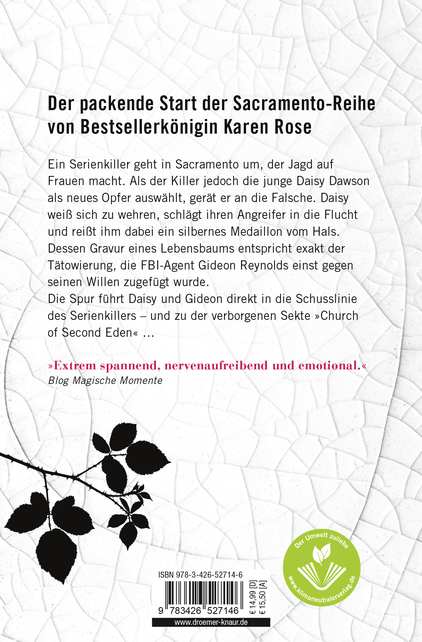 Ein Serienkiller geht in Sacramento um, der Jagd auf Frauen macht. Als der Killer jedoch die junge Daisy Dawson als neues Opfer auswählt, gerät er an die Falsche. Daisy weiß sich zu wehren, schlägt ihren Angreifer in die Flucht und reißt ihm dabei ein silbernes Medaillon vom Hals. Dessen Gravur eines Lebensbaums entspricht exakt der Tätowierung, die FBI-Agent Gideon Reynolds einst unfreiwillig zugefügt wurde. Die Spur führt Daisy und Gideon direkt in die Schusslinie des Serienkillers - und zu der verborgenen Sekte »The Church of Second Eden« ...