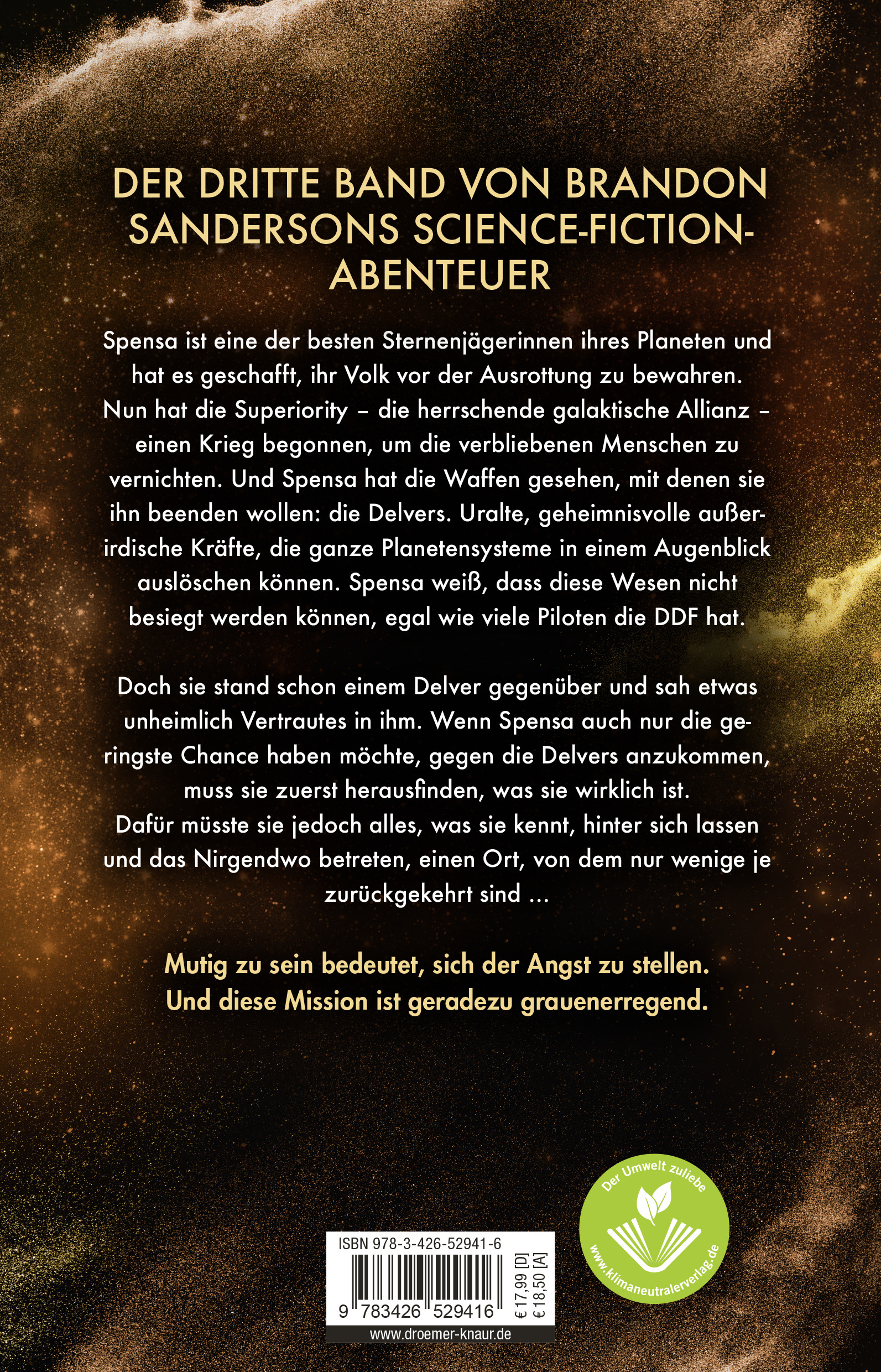 Doch inzwischen verfügt die galaktische Allianz, die alles menschliche Leben kontrollieren will, über eine ultimative Waffe: die Delvers, uralte außerirdische Kreaturen, die ganze Planeten-Systeme in einem Augenblick auslöschen können. Spensa, die bereits einem Delver begegnet ist, weiß, dass keine noch so große Raumschiff-Flotte diese Monster besiegen kann. Sie hat allerdings auch etwas seltsam Vertrautes in der Kreatur gespürt - etwas, das die Galaxie retten könnte, falls Spensa endlich herausfindet, was sie wirklich ist.