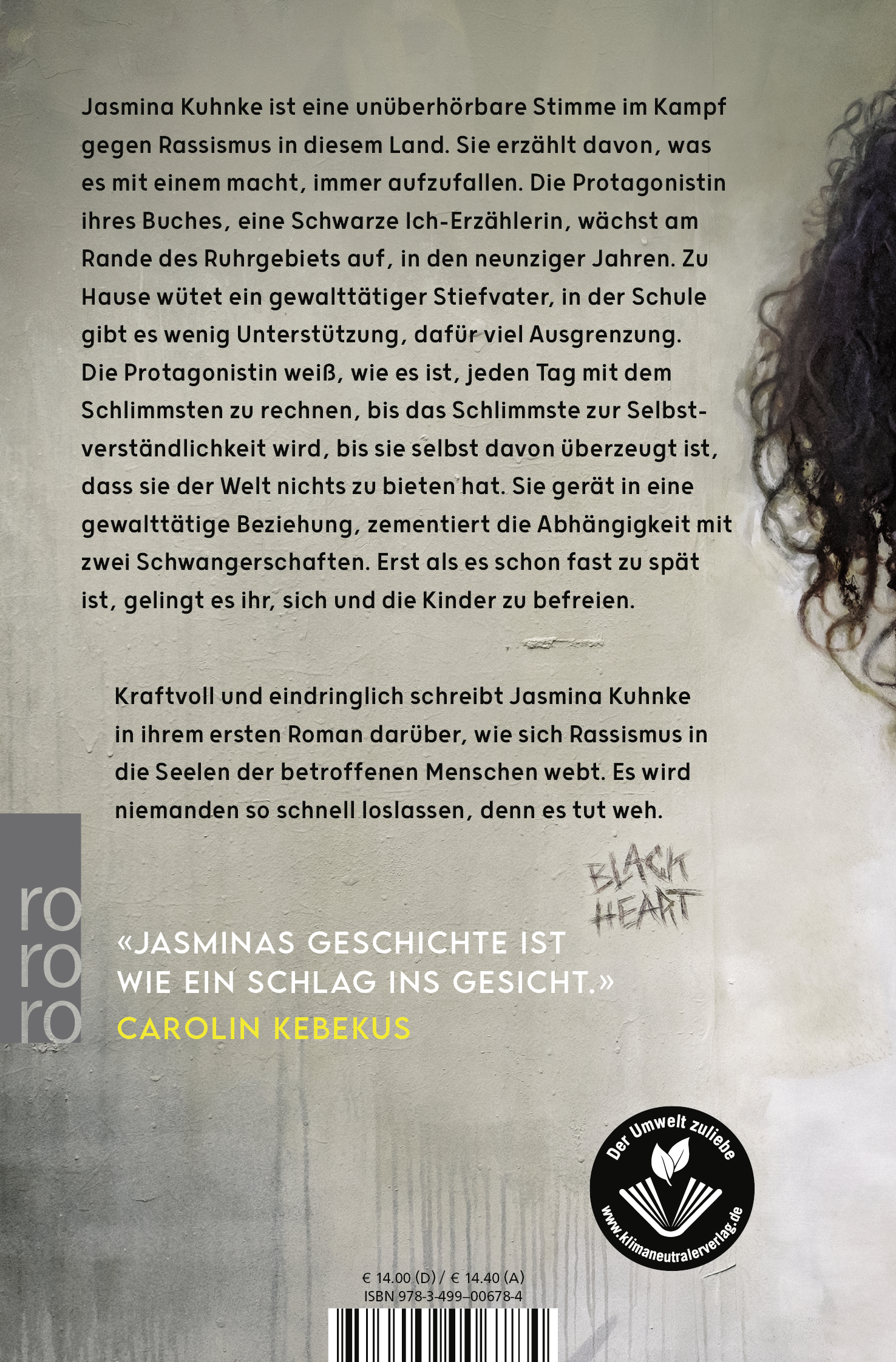Jasmina Kuhnke hat einen ziemlich guten, rauen, lauten Roman geschrieben (...) Ein Roman über tägliche Demütigungen, über Schmerz, Verachtung, Gewalt und Hass. Von der Sehnsucht, kein Opfer mehr zu sein.