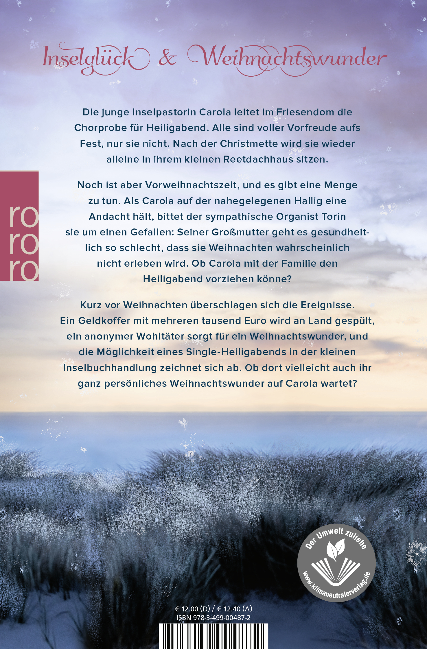 Kurz vor Weihnachten überschlagen sich die Ereignisse. Ein Geldkoffer mit mehreren tausend Euro wird an Land gespült, ein anonymer Wohltäter sorgt für ein Weihnachtswunder, und die Möglichkeit eines Single-Heiligabends in der kleinen Inselbuchhandlung zeichnet sich ab. Ob dort vielleicht auch ihr ganz persönliches Weihnachtswunder auf Carola wartet?