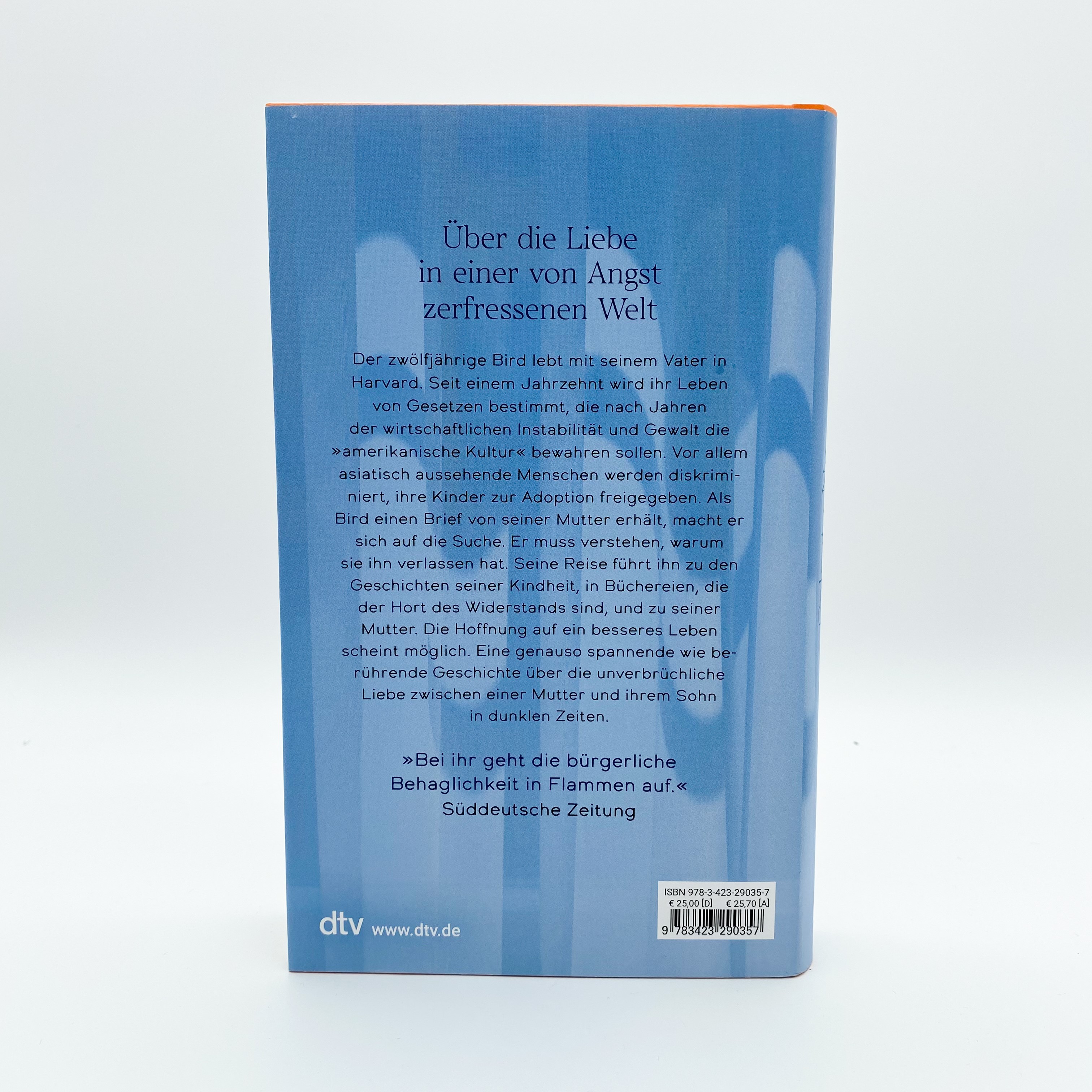 Der zwölfjährige Bird lebt mit seinem Vater in Harvard. Seit einem Jahrzehnt wird ihr Leben von Gesetzen bestimmt, die nach Jahren der wirtschaftlichen Instabilität und Gewalt die »amerikanische Kultur« bewahren sollen. Vor allem asiatisch aussehende Menschen werden diskriminiert, ihre Kinder zur Adoption freigegeben. Als Bird einen Brief von seiner Mutter erhält, macht er sich auf die Suche. Er muss verstehen, warum sie ihn verlassen hat. Seine Reise führt ihn zu den Geschichten seiner Kindheit, in Büchereien, die der Hort des Widerstands sind, und zu seiner Mutter. Die Hoffnung auf ein besseres Leben scheint möglich. Eine genauso spannende wie berührende Geschichte über die Liebe in einer von Angst zerfressenen Welt.