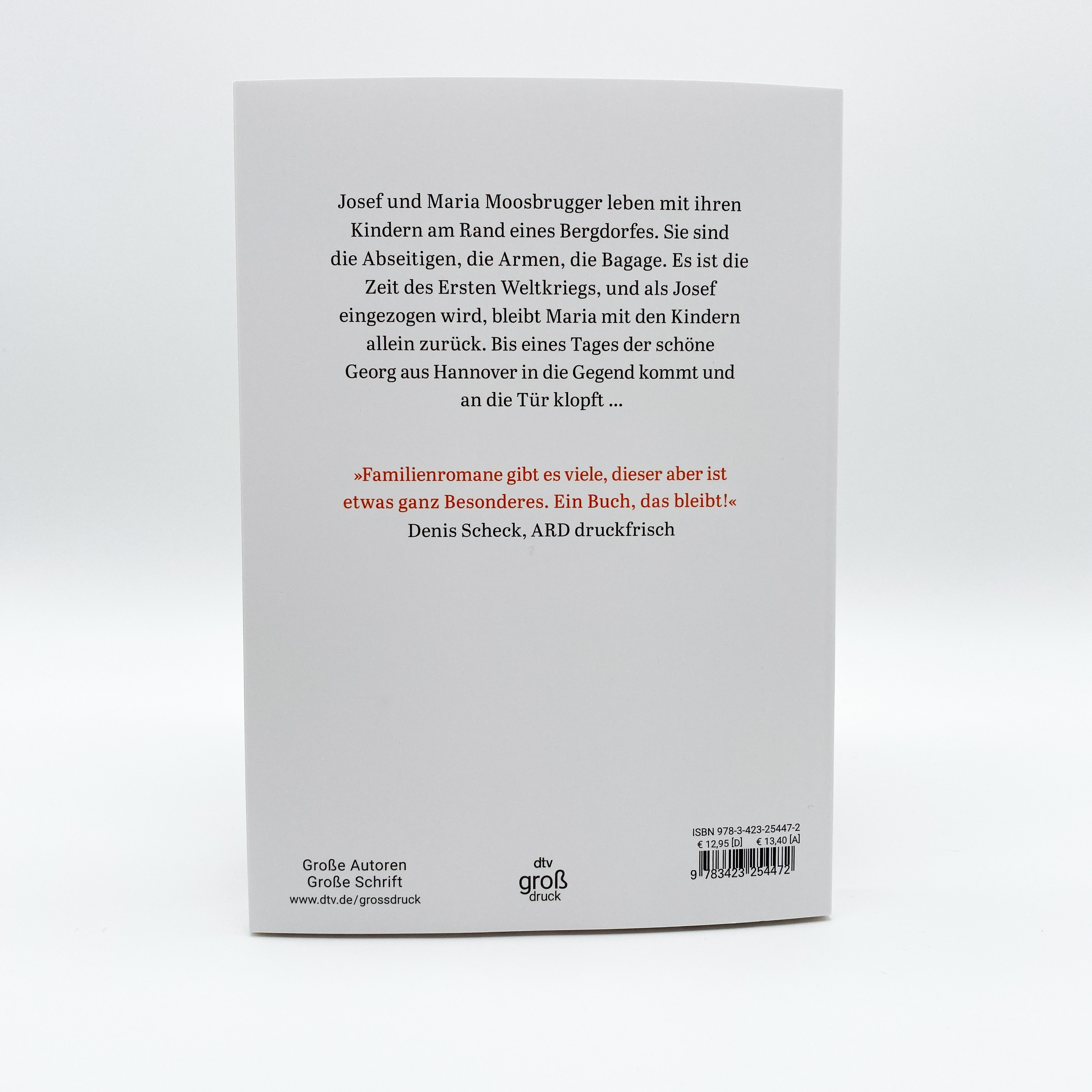 | Schlagworte | autobiographischer Familienroman • Autobiographischer Roman • Bergdorf • Bergroman • Bestseller • Bestsellerautorin • Dorfroman • Eifersucht • Emanzipation • Erster Weltkrieg • Familie Moosbrugger • Familiengeheimnis • Familiengeschichte • Familienroman • Frauenschicksal • Geschichte ihrer Herkunft • Hebel-Preis • Heimatroman • Herkunft • Johann-Peter-Hebel-Preis • Kriegsenkel • Kriegskinder • Landleben • Lebensgeschichte • Liebe • Literaturpreis • Österreich • Regionalroman • Schubart-Literaturpreis • Solothurner • SPIEGEL-Bestseller • Stammbaumforschung • Vergangenheit • Vorarlberg |