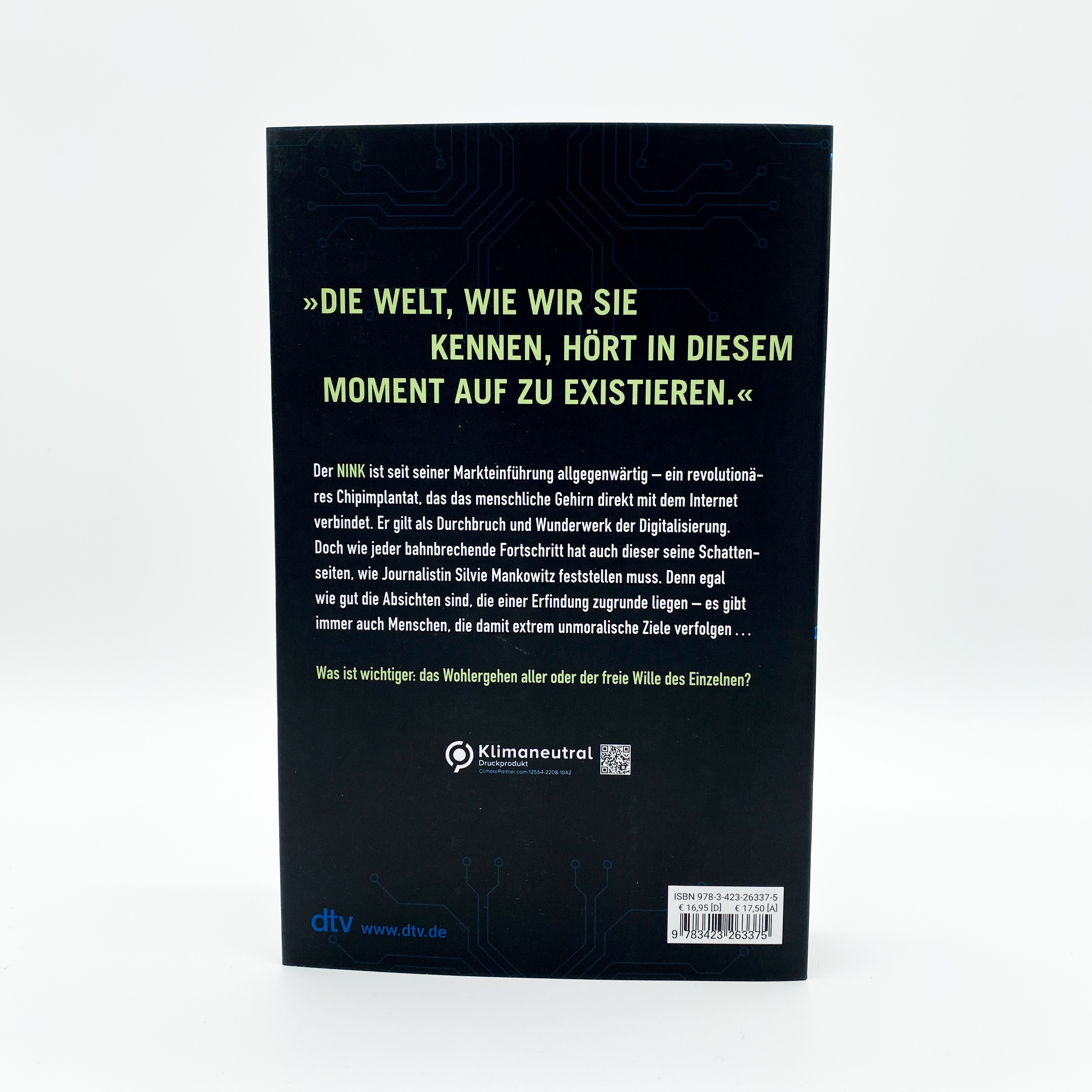 »Wir stehen an der Schwelle zu einer technischen Revolution, die unser Denken und Handeln für immer verändern wird.« Das verspricht Erik Fallberg bei der Vorstellung des NINK. Ursprünglich in der Militärforschung entwickelt, sollte der NINK-Chip ein Auslöschen traumatischer Kampferinnerungen ermöglichen.
