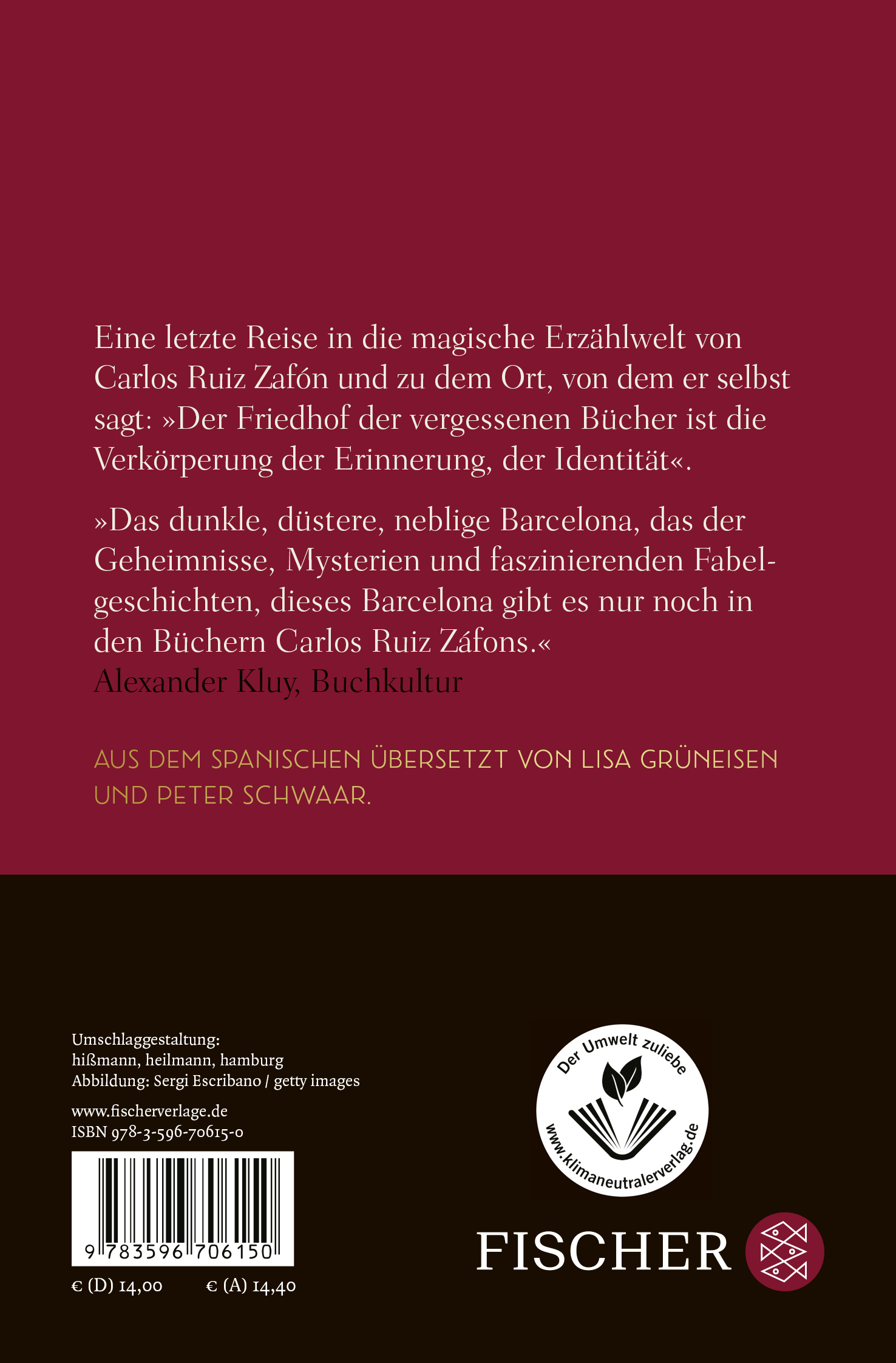 Der Friedhof der vergessenen Bücher ist der geheimnisvolle Ort, um den das gesamte Erzähluniversum von Carlos Ruiz Zafón kreist: Eine tief unter Barcelona verborgene Bibliothek, in der die Bücher darauf warten, ihre Seele an ihren Leser weiterzugeben. Im 2001 erschienenen Roman »Der Schatten des Windes« entführte uns Carlos Ruiz Zafón zum ersten Mal in dieses magische Labyrinth und schuf einen Weltbestseller.