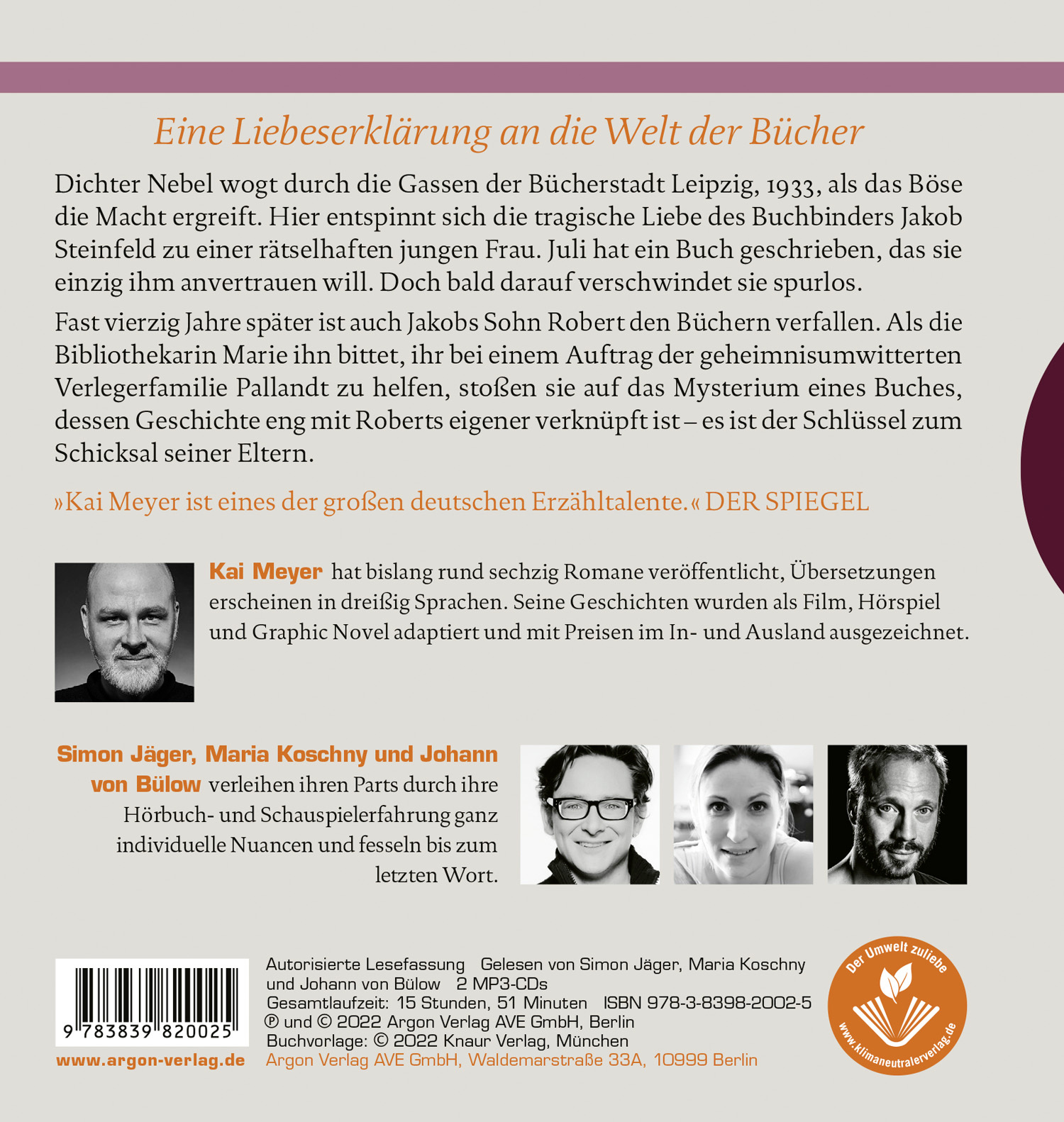 | Schlagworte | 2. Weltkrieg • Antiquariat • Buchbinderei • Büchersammler • Bücherverbrennung • Buchrestaurator • düsteres Geheimnis • Familienfehde • Familiengeheimnis • Graphisches Viertel • Handelsimperium • Herkunft • Judenverfolgung • Leipzig • Liebesgeschichte • Romane Neuerscheinungen 2022 • Schwarzhändler • seltene Bücher • Spiegel Bestseller 2023 • Verlage • Verlegerfamilie • Zeitgeschichte • Zweiter Weltkrieg |