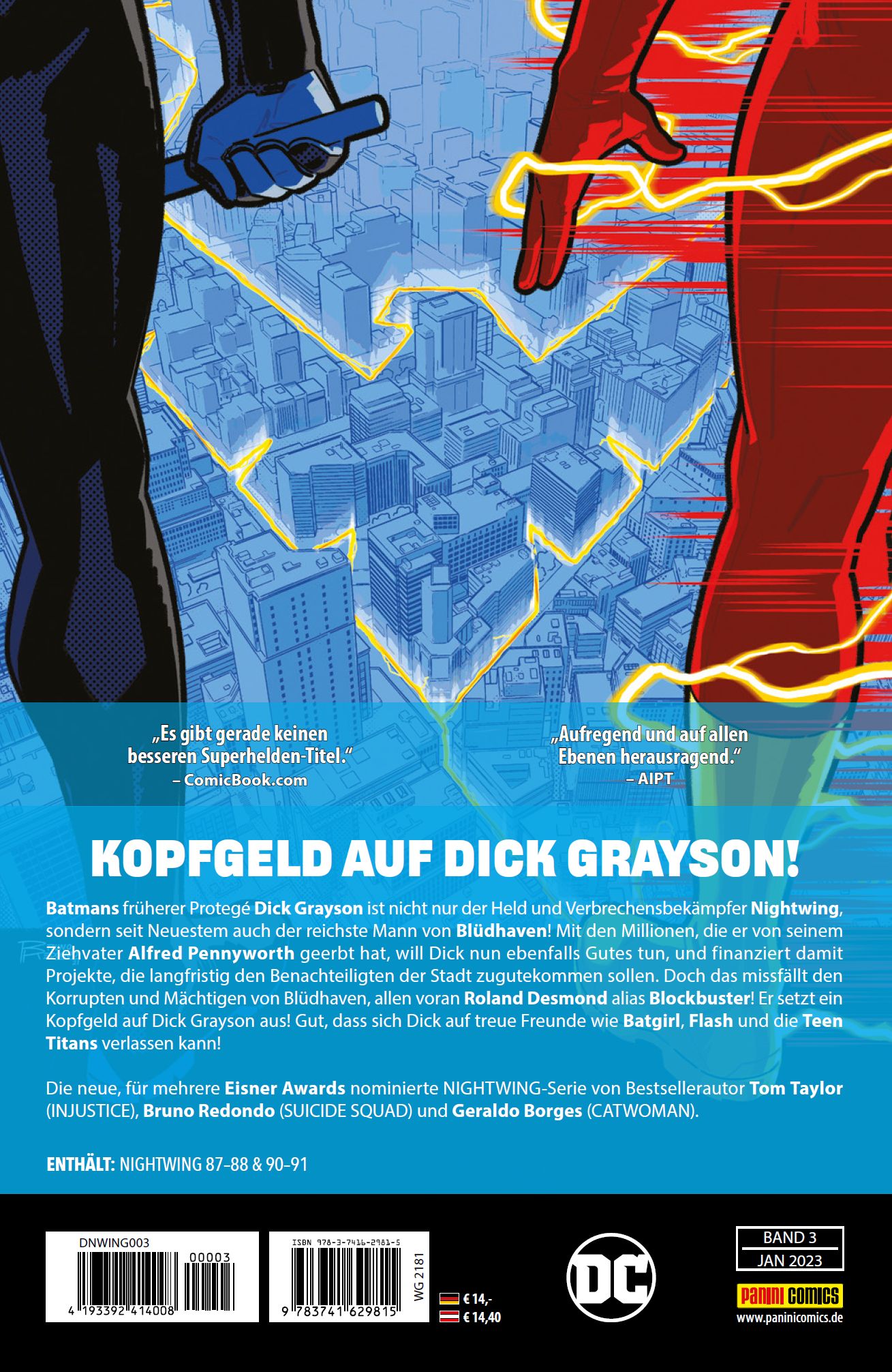 | Schlagworte | Batgirl • Blockbuster • Blüdhaven • Comic • Comics • DC • DC-Held • DC-Helden • DC Superheld • DC-Superheld • Dick Grayson • Flash • h22 • Kopfgeld • Nightwing • Panini • Paninicomics • Panini Comics • Roland Desmond • Superheld • Superhelden • Teen Titans |