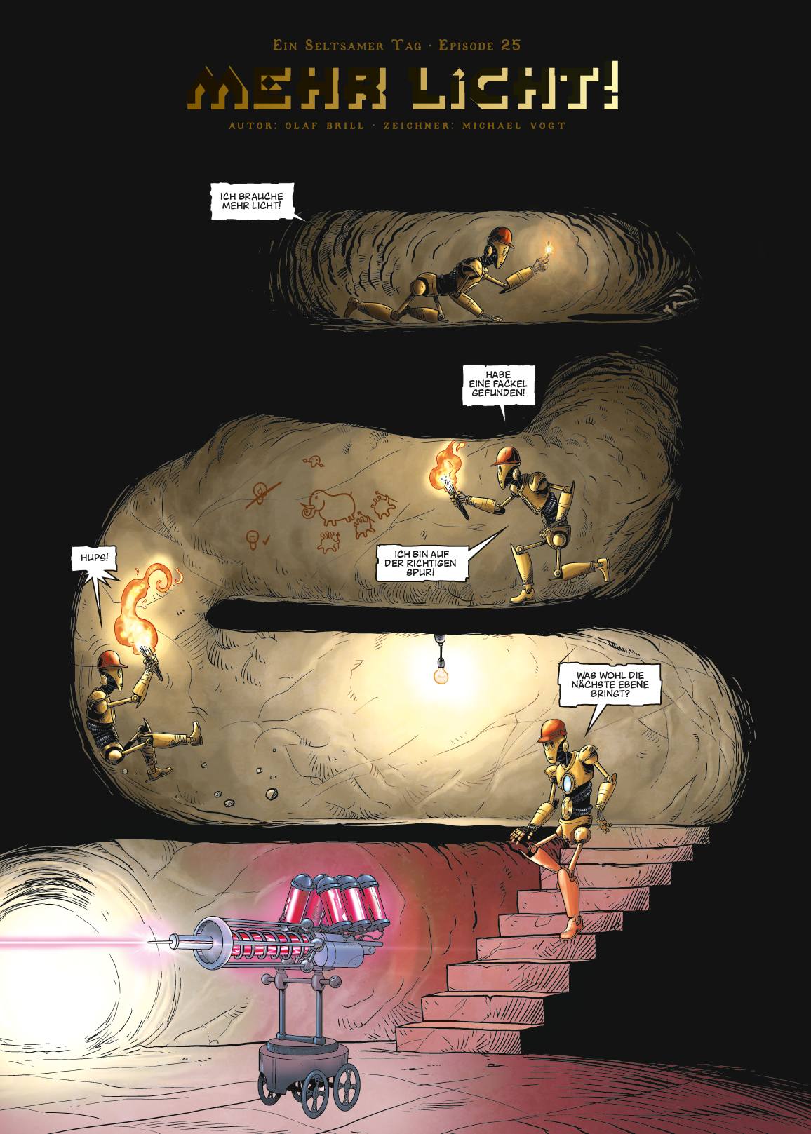 Guten Tag! Kennen wir uns schon?Mein Name ist Elf-Zehn.Seit einer Million Jahren verrichte ich meinen Job als Putzroboter und gelegentlicher Geheimagent in einer dampfbetriebenen Fabrik im Weltraum. Manchmal stehe ich dabei kopf oder begegne mir selber. In meiner Freizeit besuche ich mit meiner Roboterfrau Maschinchen die wunderlichsten Orte überall in Raum und Zeit. Wir erfahren viel über das Universum und seine seltsamen Bewohner.Für mich ist jeder neue Tag EIN SELTSAMER TAG ...EIN SELTSAMER TAG, das skurril-phantastische Robotermärchen von Olaf Brill (Perry Rhodan) und Michael Vogt (Mark Brandis), ist tiefsinnig, witzig, melancholisch, nachdenklich - und manchmal einfach nur gnadenlos albern. Seit mehr als einem Jahrzehnt erscheinen die meist ein- bis zweiseitigen Episoden regelmäßig in der Zeitschrift phantastisch!Diese Gesamtausgabe enthält sämtliche bereits erschienenen Episoden plus elf Erstveröffentlichungen, darunter die fünfteilige Saga um DIE TRANSUNIVSERALE EISENBAHN.