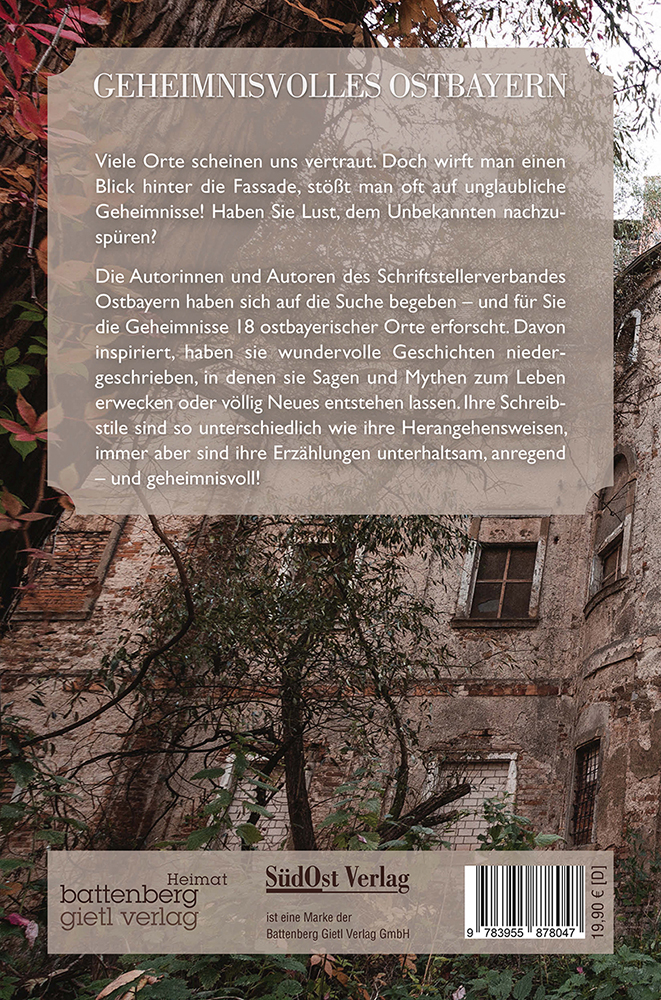 Viele Orte scheinen uns vertraut. Doch wirft man einen Blick hinter die Fassade, stößt man oft auf unglaubliche Geheimnisse! Haben Sie Lust, dem Unbekannten nachzuspüren? Die Autorinnen und Autoren des Schriftstellerverbandes Ostbayern haben sich auf die Suche begeben - und für Sie die Geheimnisse 18 ostbayerischer Orte erforscht. Davon inspiriert, haben sie wundervolle Geschichten niedergeschrieben, in denen sie Sagen und Mythen zum Leben erwecken oder völlig Neues entstehen lassen. Ihre Schreibstile sind so unterschiedlich wie ihre Herangehensweisen, immer aber sind ihre Erzählungen unterhaltsam, anregend - und geheimnisvoll!