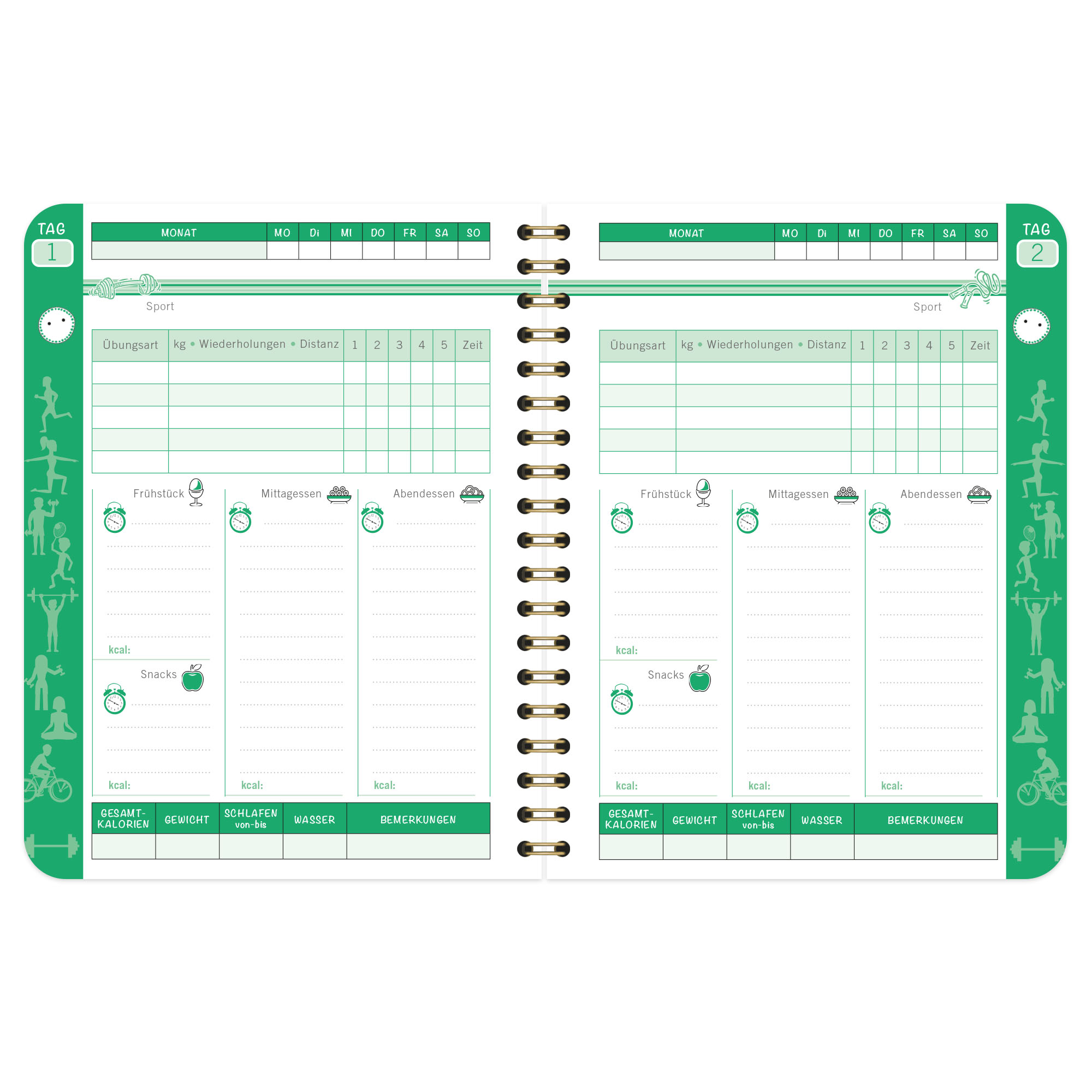 lt;p>Sie möchten fitter sein, sich mehr bewegen und insgesamt gesünder leben? Mit diesem Tagebuch verschaffen Sie sich ganz leicht einen Überblick über Ihre Aktivitäten und Mahlzeiten. Unter anderem kann so der eigene Fortschritt sichtbar gemacht werden. Wenn Sie konkrete Ziele haben, fällt es mit dem Tagebuch leichter, kleine Zwischenerfolge besser wahrzunehmen und so Ihre Motivation zu fördern. Ob Sie Ernährungsgewohnheiten ändern möchten, sportliche Aktivitäten fester in Ihren Alltag integrieren wollen oder beides - setzen Sie sich Ziele und behalten Sie Ihren Fortschritt im Blick. Auf dieser Grundlage können Sie Gewohnheiten anpassen. Bauen Sie Sport schrittweise in den Alltag ein oder passen Sie auf Wunsch Ihre Ernährung an. Freuen Sie sich auch über kleine Zwischenerfolge. Dieses Buch ist der ultimative Fitnessbegleiter für jeden Tag.