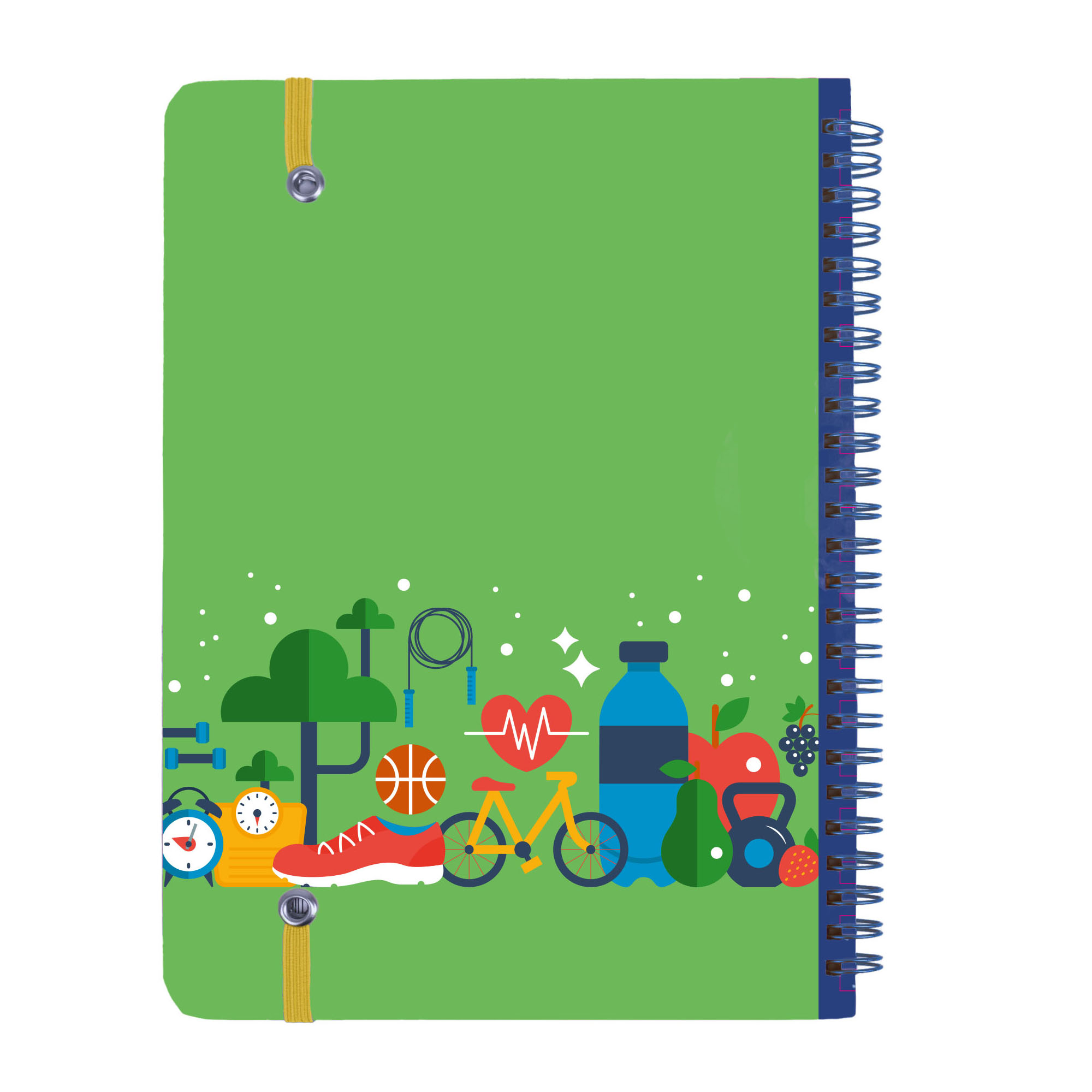Eintragbuch zum Ausfüllen mit Spiralbindung und Gummiband, Fitnesstracker, Ernährungstracker für Männer und Frauen in blau und grün