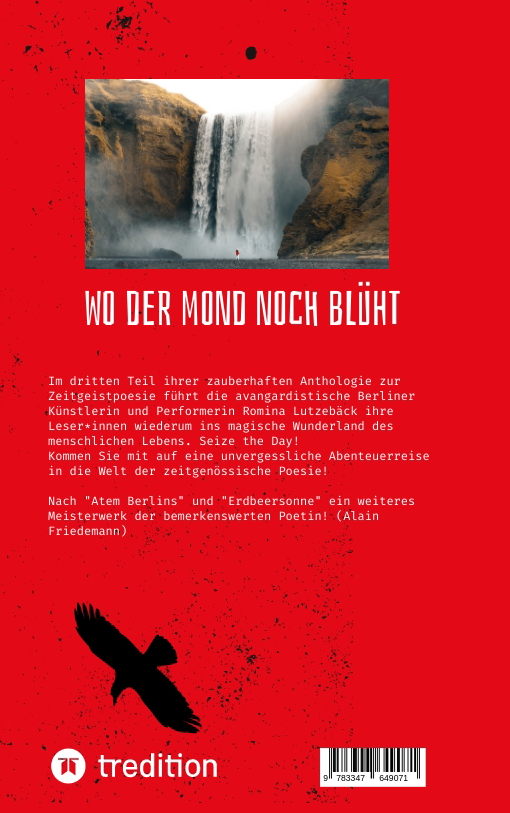 Romina Lutzebäck ist eine junge spirituelle Poetin, die nach Wanderjahren in Berlin zur Zeit bei den Möwen in Kiel an der Ostsee lacht, schreibt und liebt. Zeitgeist-Lyrik, Romane, Kurzprosa und Ideen für Drehbücher sind der psychotherapeutischen Heilpraktikerin und Pädagogin ein besonderes Herzensanliegen...