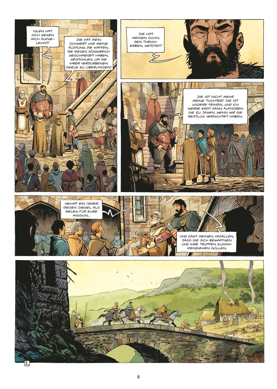 Islen hat ihre Tiere mithilfe der schrecklichen Kräfte ihrer Mutter gegen ihren Vater, den König, aufgebracht. Auf der Flucht aus dessen Kerker lernt sie den gefallenen Ritter Arzhur besser kennen und erfährt, dass auch er dem Fluch seiner Herkunft entkommen will. Wird es den beiden verlorenen Seelen gelingen, ihr Glück zu finden? Wird Islen dem vergifteten Erbe ihrer mächtigen Mutter entgehen können? Die drei alten Frauen, die das Paar aus den Schatten beobachten, werden keinen einzigen Augenblick dieses dramatischen Schauspiels verpassen, in dessen Verlauf zahlreiche Masken fallen werden.So altbewährt die Komponenten dieses phantastischen Zweiteilers erscheinen, so erfrischend sind die Variationen, die Autor Hubert in sein Szenario hineinflicht. Eine ideale Vorlage für das zeichnerische Talent von Vincent Mallié (»Der große Tote«), das bei diesem düsteren Fantasy-Märchen in vollem Ausmaß zur Geltung kommt.Abschlussband der Miniserie