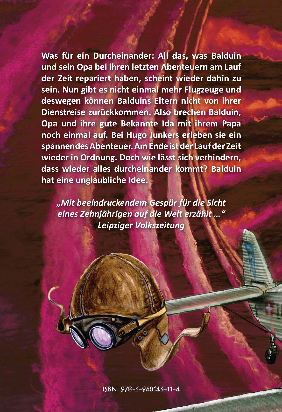 Was für ein Durcheinander: All das, was Balduin und sein Opa bei ihren letzten Abenteuern am Lauf der Zeit repariert haben, scheint wieder dahin zu sein.Nun erleben sie bei Hugo Junkers ein spannendes Abenteuer. Am Ende ist der Lauf der Zeit wieder in Ordnung. Doch wie lässt sich verhindern, dass wieder alles durcheinander kommt? Balduin hat eine unglaubliche Idee.