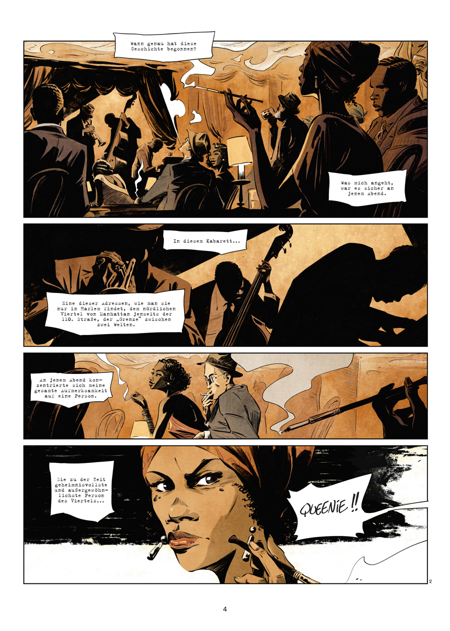 Inmitten der Weltwirtschaftskrise im Viertel Harlem in Manhattan ist Einfallsreichtum die Mutter der Porzellankiste. Das gilt für Stéphanie St. Clair, genannt Queenie, als schwarze Frau aus der Karibik umso mehr. Nach 20 Jahren in New York City hat sie sich nicht nur von den Fesseln ihrer Vergangenheit befreit, sondern ihren ganz eigenen Amerikanischen Traum verwirklicht: die illegale Lotterie in Harlem. Doch als die Prohibition endet, der Alkoholschmuggel weniger einträglich wird und die Gewinne der Mafia schmelzen, will der skrupellose Gangster Dutch Schulz etwas von Queenies Kuchen abhaben. Oder, um genau zu sein, sich ihren Kuchen einverleiben. Doch da hat er die Rechnung ohne Queenie gemacht, deren dunkle Vergangenheit lange Schatten wirft...»Harlem«: ein realistisches Gangster-Drama in detailverliebtem Sepia, die fesselnde Geschichte einer durch Schmerz und Missbrauch gestählten Frau, die um ihren Platz an der Sonne kämpft, das Portrait einer schwarzen Königin in einer Stadt voller weißer Männer, an deren Händen rotes Blut klebt.
