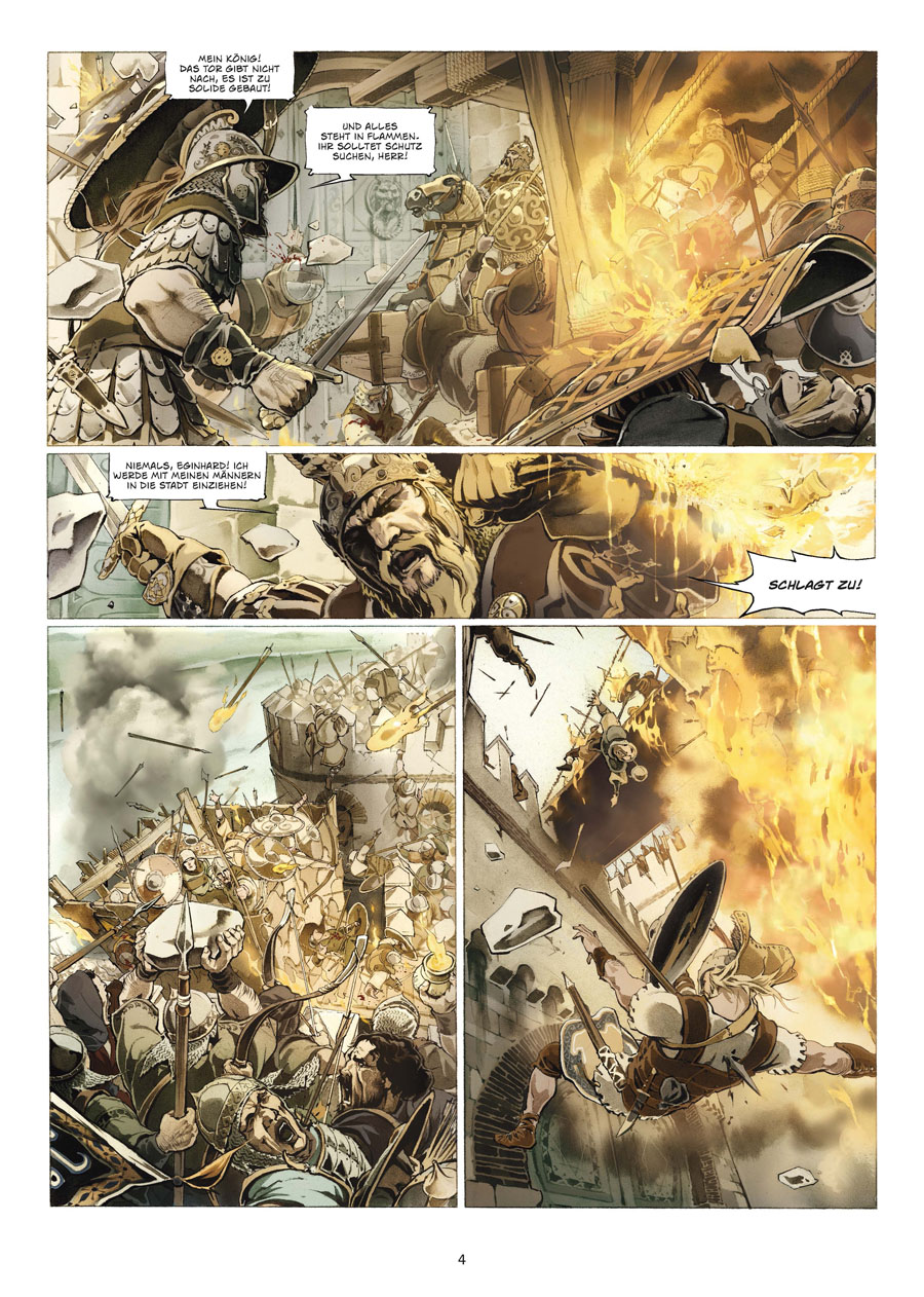 »Munjoie!«, so schallt es aus den Kehlen der Christen, die sich für den Ruhm Gottes unter dem Banner Karls des Großen sammeln. »Munjoie!«, wenn sie sich für das Kaiserreich gegen die Muslime Hispaniens in die Schlacht stürzen. »Munjoie!«, während sie zu hunderten durch die Hand ihrer Feinde fallen.»Die Chroniken von Roncesvalles« übersetzen das Epos Karls des Großen und seines legendären Heerführers Roland in die Neunte Kunst. In atmosphärischen, sublim kolorierten Bildern erzählt Juan Luis Landa die Geschichte eines blinden Eroberungskrieges mit katastrophalen Folgen, der seinen Höhepunkt in der dramatischen Schlacht von Roncesvalles findet. Dort liegt der Ursprung des »Rolandslieds«, eines zentralen Werks der französischen Literatur.