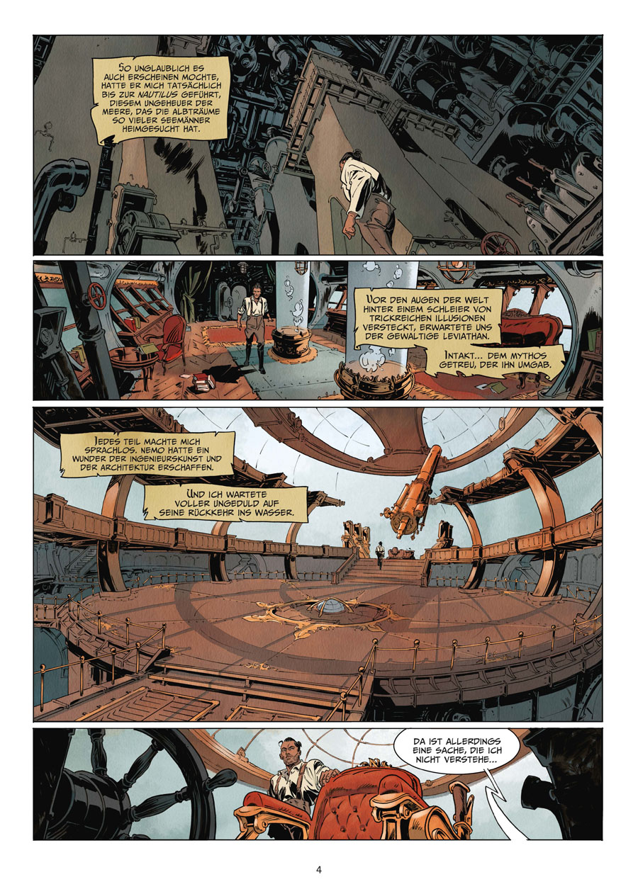 Indem er sich als französischer Regierungsagent ausgibt, gelingt es Kimball, Nemo aus dem russischen Gefängnis zu befreien, in welchem dieser seit mehr als 10 Jahren festgehalten wird. Nun, da sie erneut mit ihrem legendären Kapitän vereint wurde, ist die Nautilus bereit, die Bucht von Bombay anzusteuern. Dort liegen die Dokumente, mit denen Kimball seine Unschuld beweisen will, immer noch am Meeresgrund. Die Zeit drängt, denn Nemos Befreiung ist nicht unbemerkt geblieben, und auch Kimball hat weiterhin Verfolger auf den Fersen! Doch noch bevor das Schiff in See gestochen ist, geraten sich die beiden Sturköpfe bereits in die Haare. Wenn sie eine Chance auf Erfolg haben wollen, müssen sie sich wohl oder übel zusammenraufen.Ein abenteuerlicher Spionage-Thriller vor exotisch-historischem Hintergrund, an dem sowohl Jules Verne als auch Ian Fleming ihre Freude gehabt hätten!