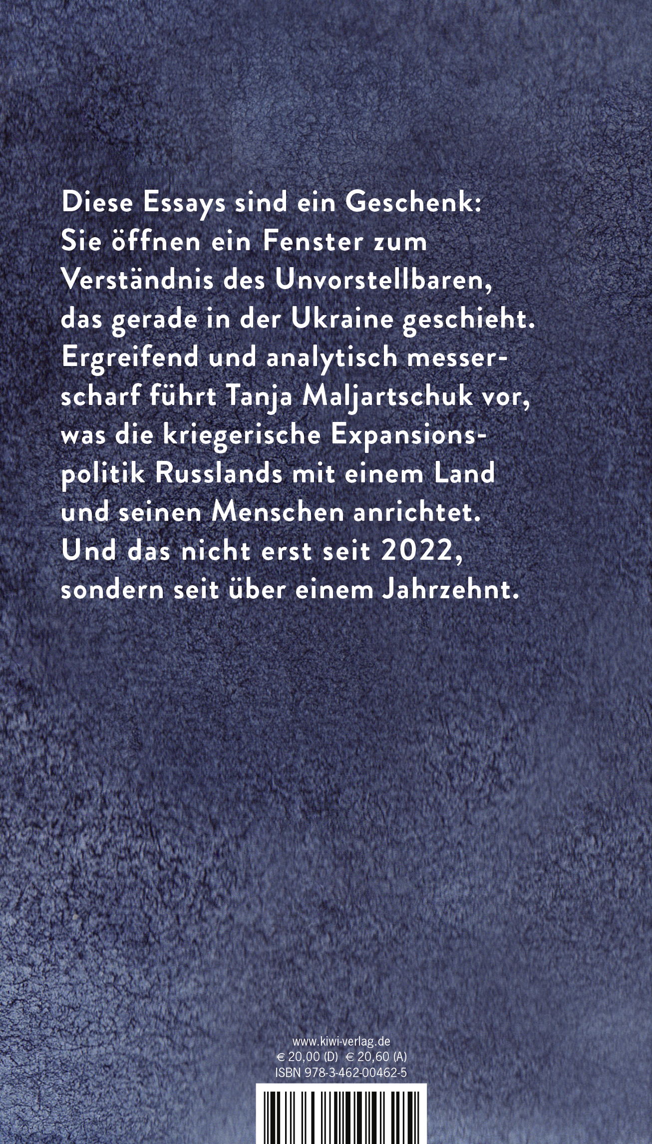 Diese Essays sind ein Geschenk: Sie öffnen ein Fenster zum Verständnis des Unvorstellbaren, das gerade in der Ukraine geschieht. Ergreifend und analytisch messerscharf führt die Ingeborg-Bachmann-Preisträgerin Tanja Maljartschuk vor, was die kriegerische Expansionspolitik Russlands mit einem Land und seinen Menschen anrichtet. Und das nicht erst seit 2022, sondern seit über einem Jahrzehnt.