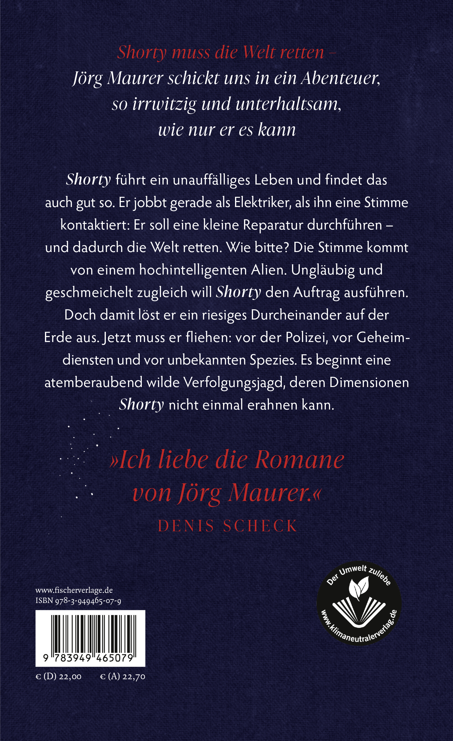 Shorty ist ein unsteter Geist. Seine berufliche Karriere ist genauso wechselhaft wie sein Privatleben. Gerade repariert er elektrische Leitungen in einem Baubüro und überlegt, ob er die dort arbeitende Architektin Bluna zu einem Kaffee einladen soll. Da hört er plötzlich in seinem Kopfhörer eine Stimme, die ihn direkt mit Namen anspricht: »Shorty? Kannst du mich verstehen?« Die Stimme hat einen Auftrag für ihn. Er soll in dem Umspannwerk, wo er ebenfalls jobbt, eine kleine Maßnahme durchführen, angeblich, um die Welt zu retten. Die Stimme, die sich als hochintelligenter Alien vorstellt, versichert ihm, es sei ganz einfach, er müsse nur zum richtigen Zeitpunkt einen Kurzschluss auslösen. Shorty lässt sich auf die Sache ein, aber sie geht gründlich schief. Ein riesiges Durcheinander entsteht - nicht nur in der Stadt, in der Shorty wohnt, sondern auf der ganzen Erde. Shortys Problem: Alle Welt hält ihn für den Schuldigen an der Katastrophe. Was einerseits etwas ungerecht ist, andererseits aber auch nicht ganz falsch ...