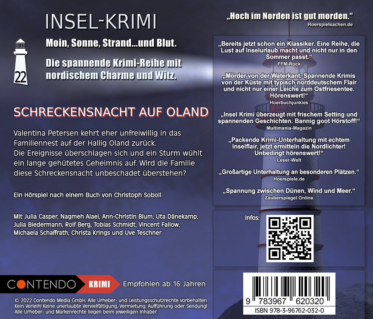 Lassen Sie sich fesseln vom norddeutschen Charme, frechem Humor, bekannten Synchronstimmen, orchestralem Soundtrack und realistischen Sounds. Ein einmaliges Hörspiel-Erlebnis in seiner schönsten Form!