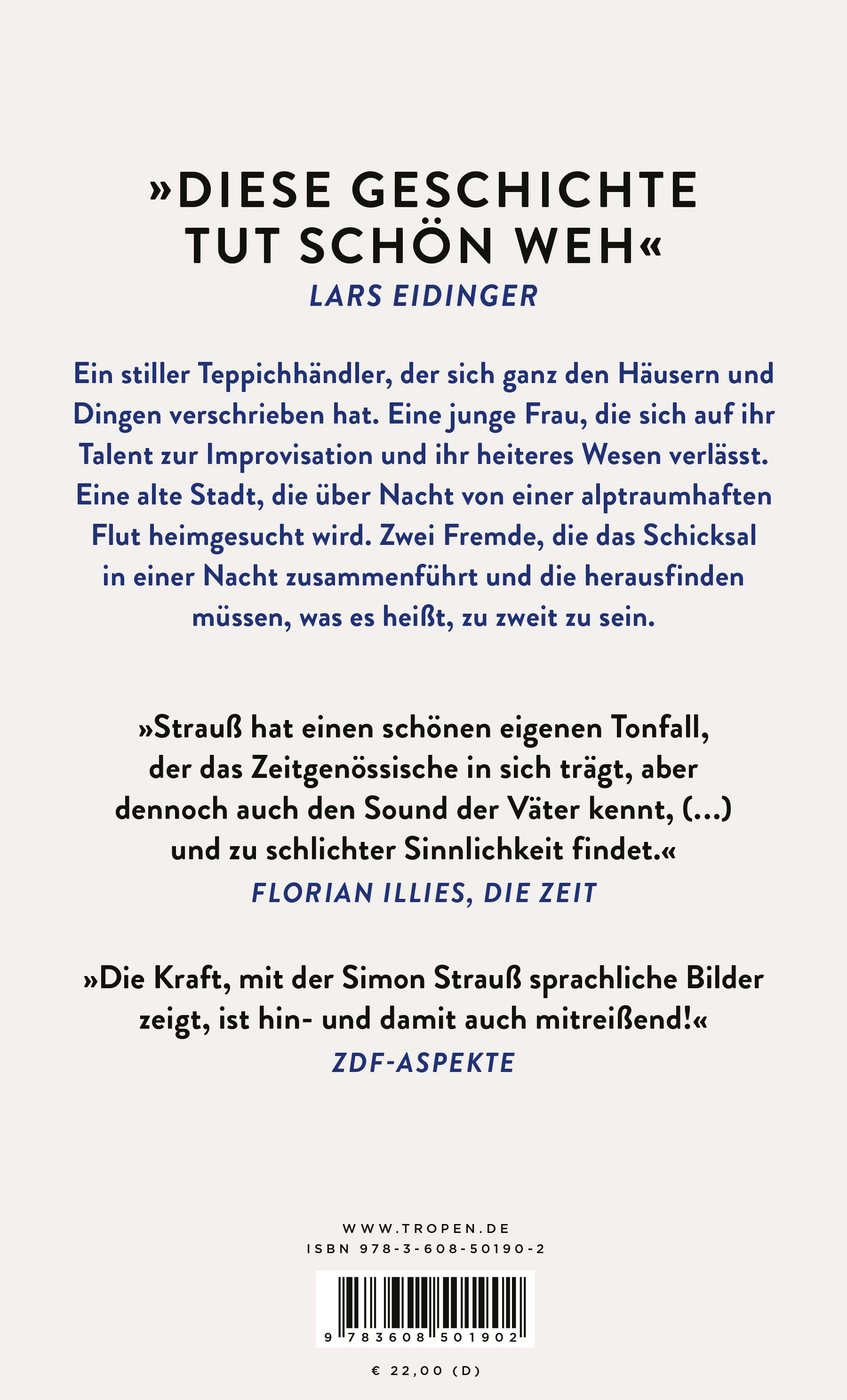 »Strauß hat einen schönen eigenen Tonfall, der das Zeitgenössische in sich trägt, aber dennoch auch den Sound der Väter kennt, (...) und zu schlichter Sinnlichkeit findet.« Florian Illies, Die Zeit