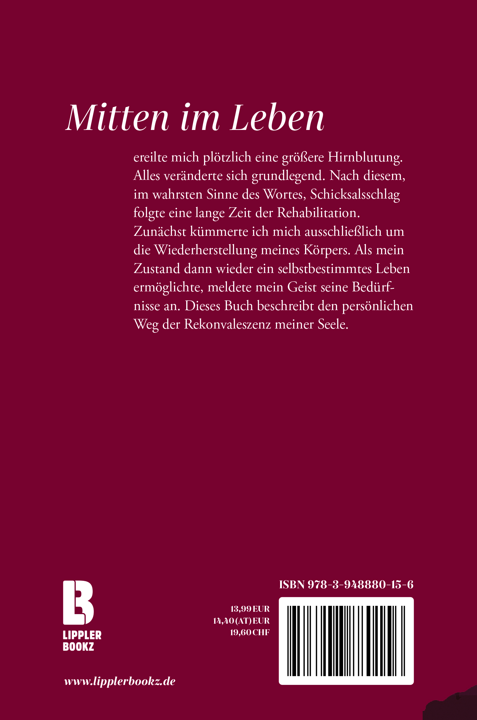Mitten im Leben ereilte mich plötzlich eine größere Hirnblutung. Alles veränderte sich grundlegend. Nach diesem, im wahrsten Sinne des Wortes, Schicksalsschlag folgte eine lange Zeit der Rehabilitation.Zunächst kümmerte ich mich ausschließlich um die Wiederherstellung meines Körpers. Als mein Zustand dann wieder ein selbstbestimmtes Leben ermöglichte, meldete mein Geist seine Bedürfnisse an. Dieses Buch beschreibt den persönlichen Weg der Rekonvaleszenz meiner Seele.