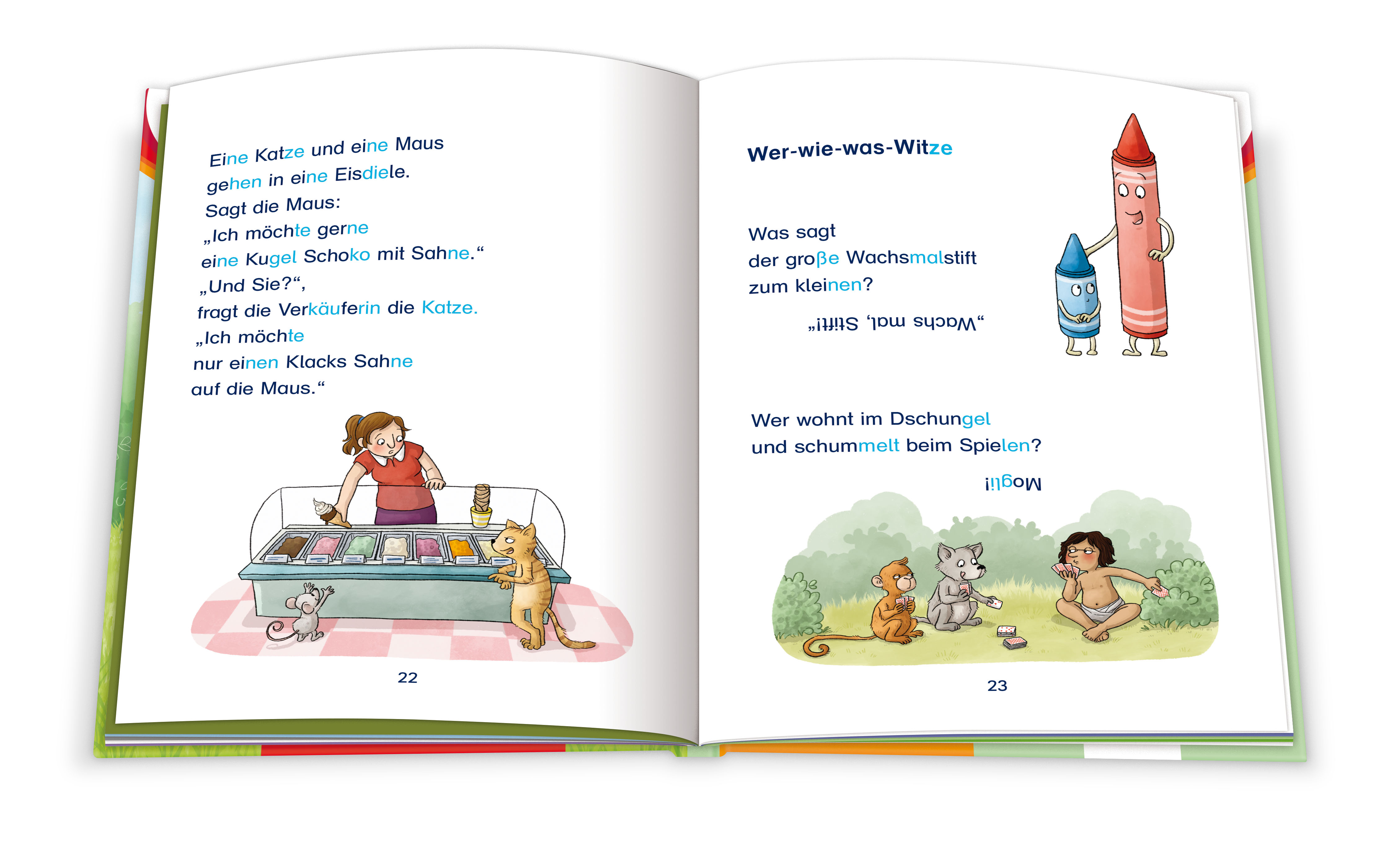 Egal, ob Wirre-Wörter-Witze, Wer-wie-wo-was-Witze, Tier-, Schul- oder Alltagswitze - an den kurzen Texten haben Leseanfänger*innen ihre Freude.