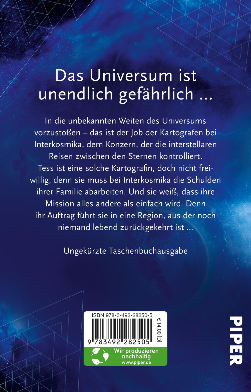 In die unbekannten Weiten des Universums vorzustoßen - das ist der Job der Kartografen bei Interkosmika, dem Konzern, der die interstellaren Reisen zwischen den Sternen kontrolliert. Tess ist eine solche Kartografin, doch nicht freiwillig, denn sie muss bei Interkosmika die Schulden ihrer Familie abarbeiten. Und sie weiß, dass ihre Mission alles andere als einfach wird. Denn ihr Auftrag führt sie in eine Region, aus der noch keiner lebend zurückgekehrt ist ...