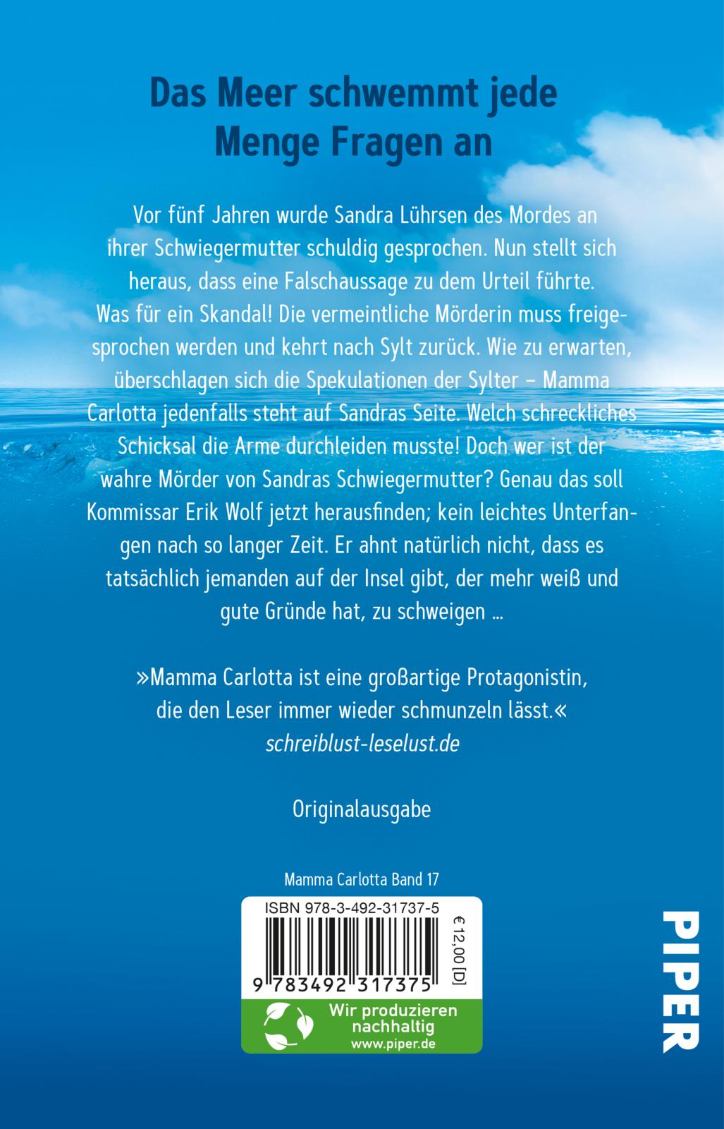 Vor fünf Jahren wurde Sandra Lührsen des Mordes an ihrer Schwiegermutter schuldig gesprochen. Nun stellt sich heraus, dass eine Falschaussage zu dem Urteil führte. Was für ein Skandal! Die vermeintliche Mörderin muss freigesprochen werden und kehrt nach Sylt zurück. Wie zu erwarten, überschlagen sich die Spekulationen der Sylter - Mamma Carlotta jedenfalls steht auf Sandras Seite, welch schreckliches Schicksal die Arme durchleiden musste! Doch wer ist der wahre Mörder ihrer Schwiegermutter? Genau das soll Kommissar Erik Wolf jetzt herausfinden; kein leichtes Unterfangen nach so langer Zeit. Er ahnt natürlich nicht, dass es tatsächlich jemanden auf der Insel gibt, der mehr weiß und gute Gründe hat, zu schweigen ...