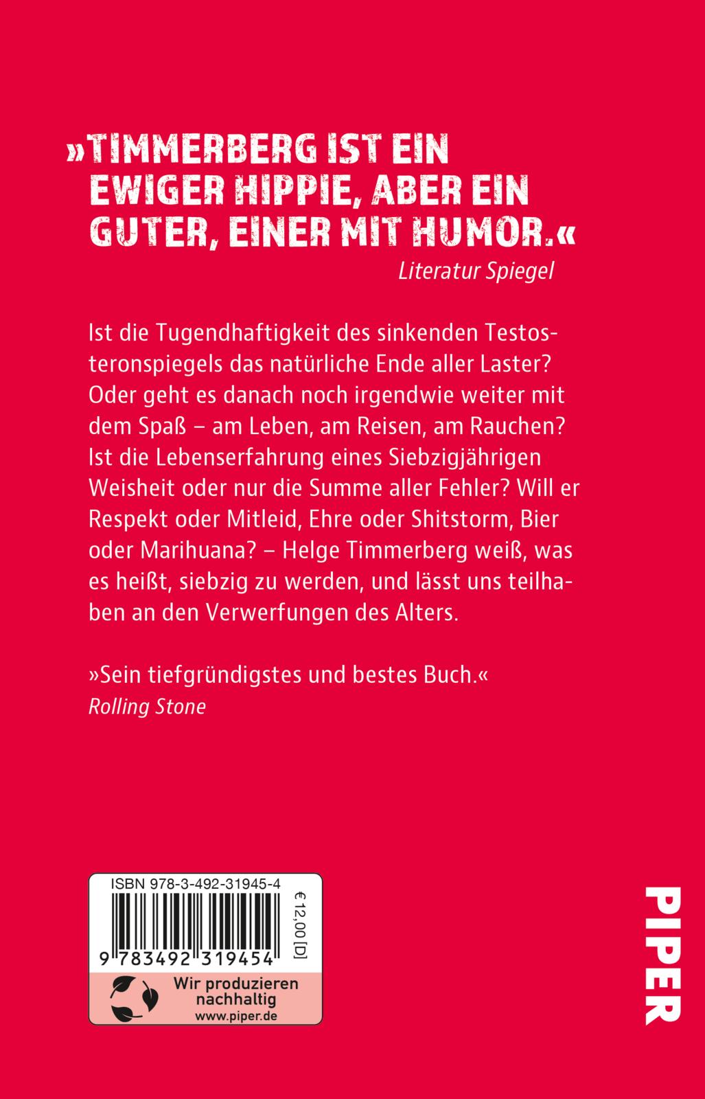 Ist die Tugendhaftigkeit des sinkenden Testosteronspiegels das natürliche Ende aller Laster? Oder geht es danach noch irgendwie weiter mit dem Spaß - am Leben, am Reisen, am Rauchen? Ist die Lebenserfahrung eines Siebzigjährigen Weisheit oder nur die Summe aller Fehler? Will er Respekt oder Mitleid, Ehre oder Shitstorm, Bier oder Marihuana?