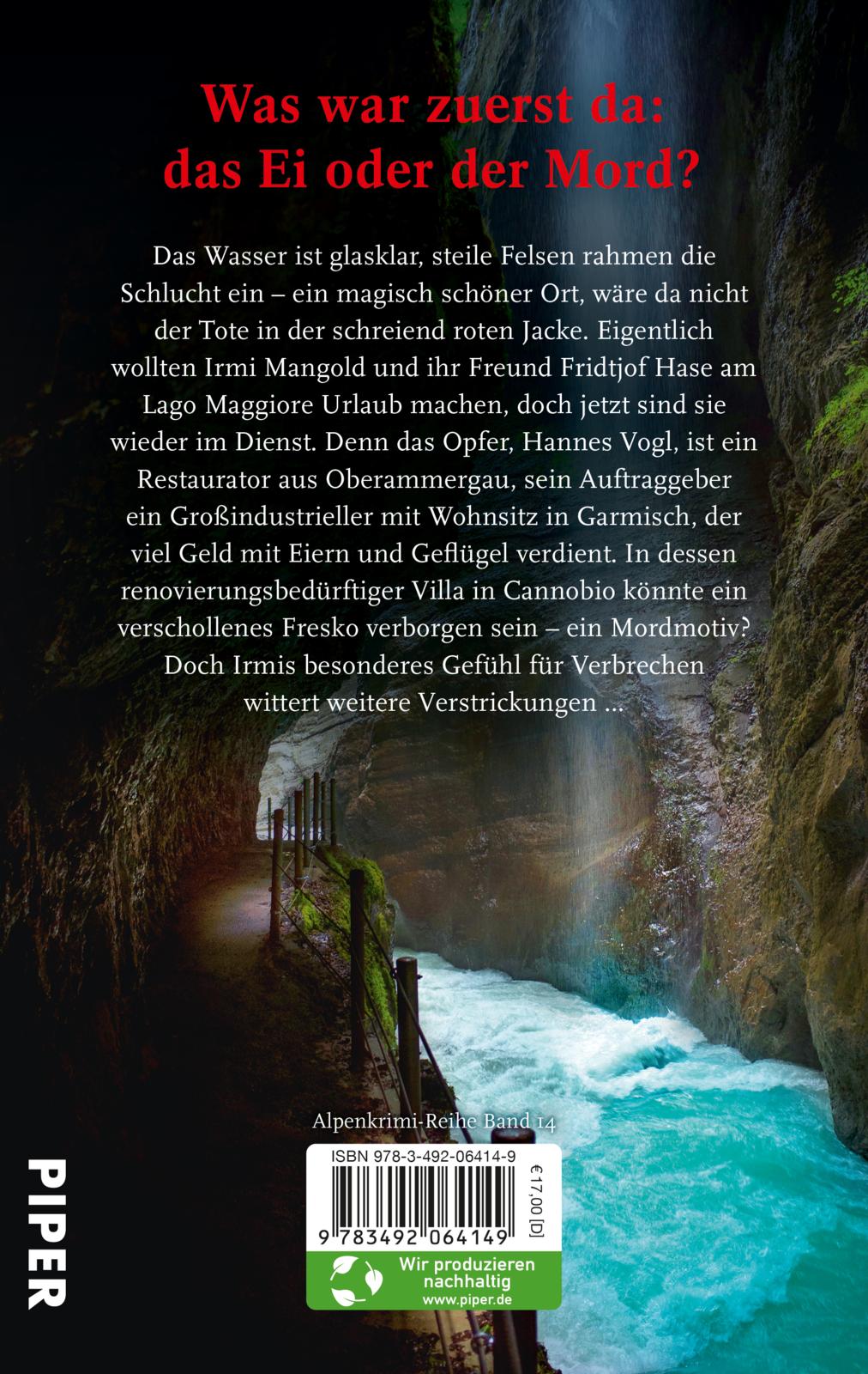 Denn das Opfer, Hannes Vogl, ist ein Restaurator aus Oberammergau, sein Auftraggeber ein Großindustrieller mit Wohnsitz in Garmisch, der viel Geld mit Eiern und Geflügel verdient. In dessen renovierungsbedürftiger Villa in Cannobio könnte nach ersten Ermittlungen ein verschollenes Fresko verborgen sein - ein mögliches Mordmotiv? Doch Irmis besonderes Gefühl für Verbrechen wittert noch weitere Verstrickungen ...