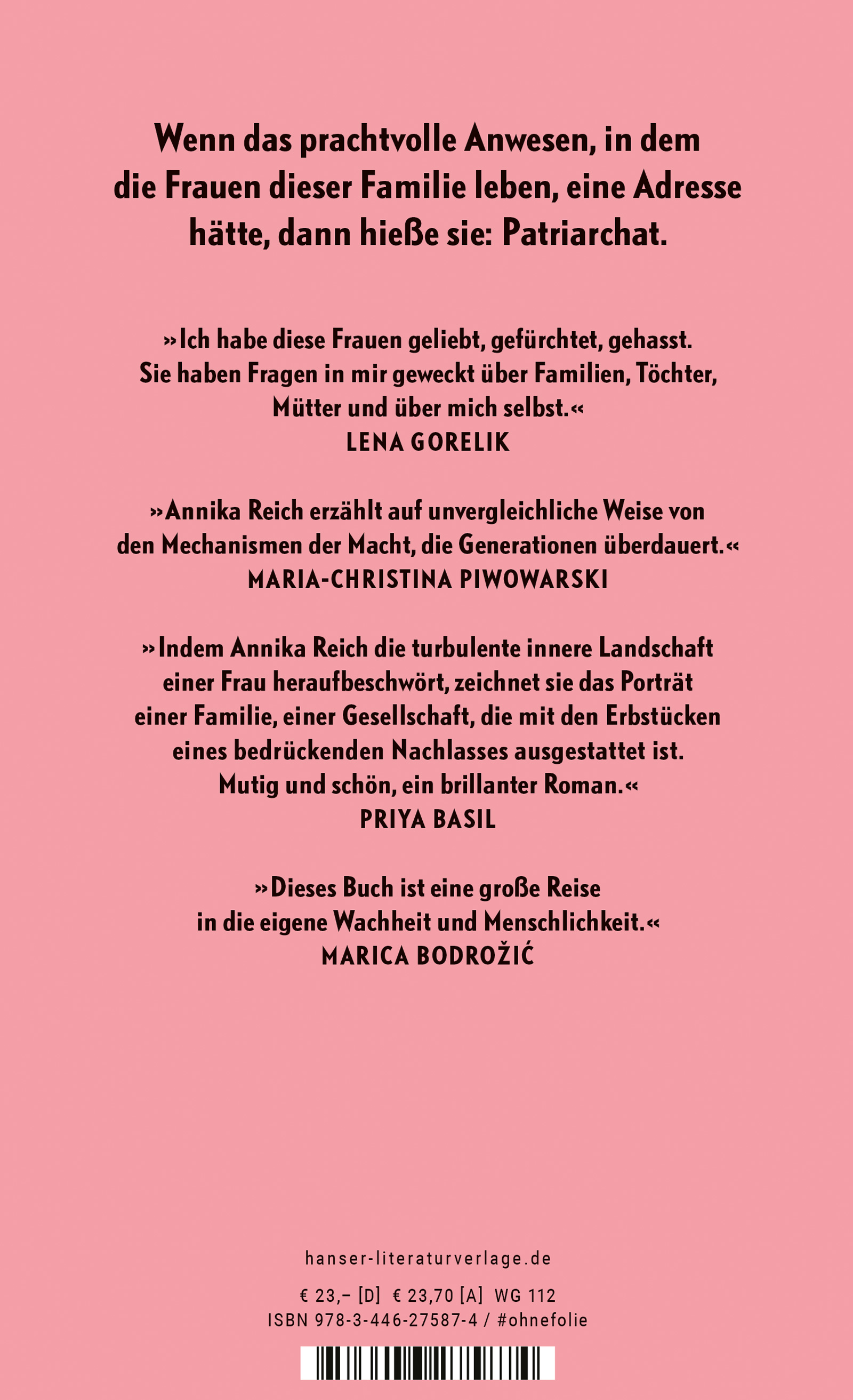 "Wenn das prachtvolle Anwesen, in dem die Frauen dieser Familie lebten, eine Adresse hätte, dann hieße sie: Patriarchat." Annika Reich