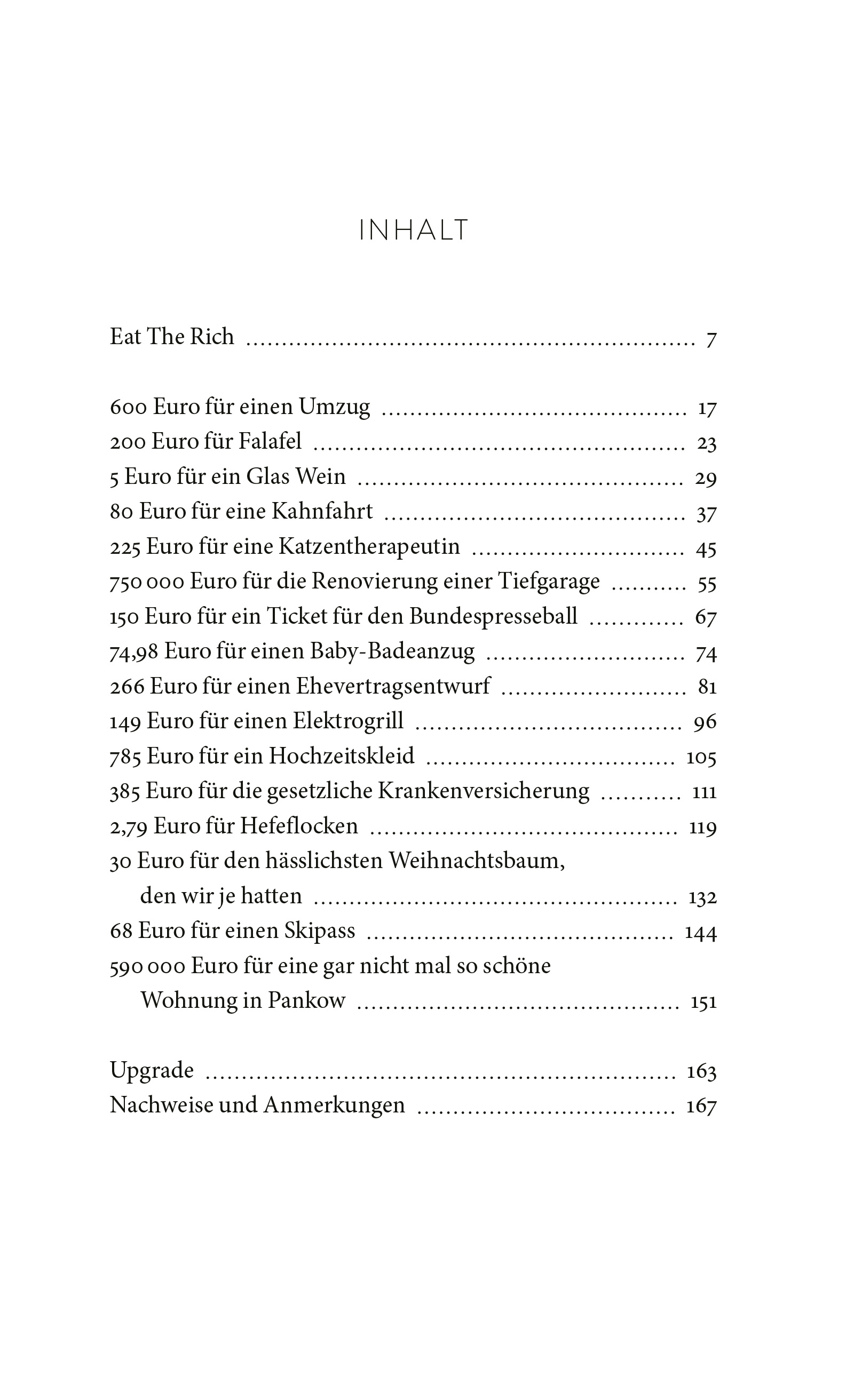Geld gab es in ihrer Familie immer zu wenig. Als Kind fragte sie sich deshalb, wie manche achtlos hunderte Euro für Taschen, Schuhe, Steaks ausgeben können, während es gleichzeitig so viele Menschen gibt, für die 100 Euro ein kleines Vermögen sind. Inzwischen ist sie selbst eine von denen geworden, die verschwenderisch Geld ausgeben: 60 Euro für einen Skipass, 225 Euro für eine Katzentherapeutin, 748 Euro für ein Brautkleid. Immer noch rechnet sie die Beträge beim Bezahlen in Hartz-IV-Regelsätze um.