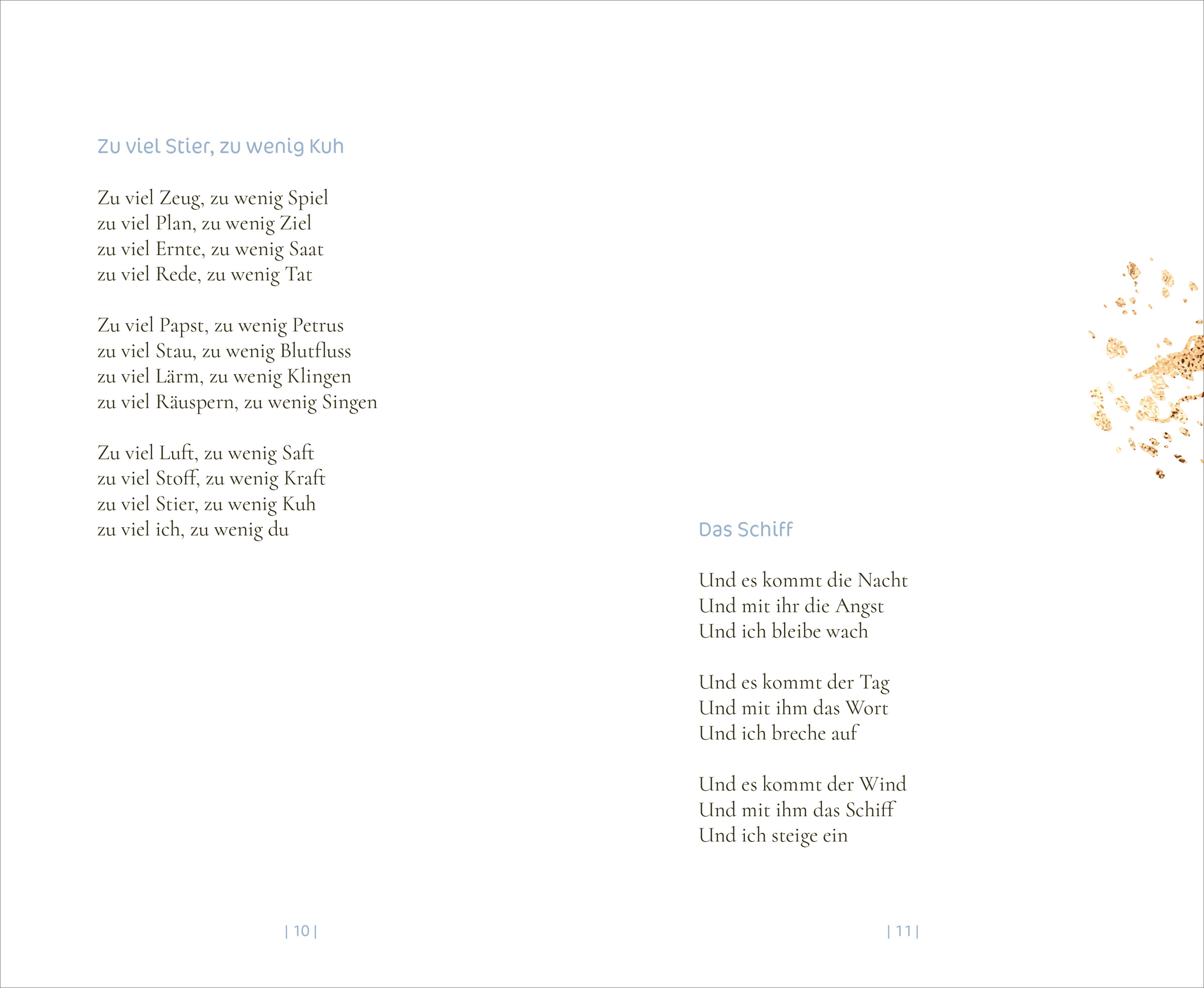 [...] in seinen Gedichten malt er mit Worten Bilder, die ebenso vielfältig und abwechslungsreich sind. Michaela Pelz Süddeutsche Zeitung 20230317