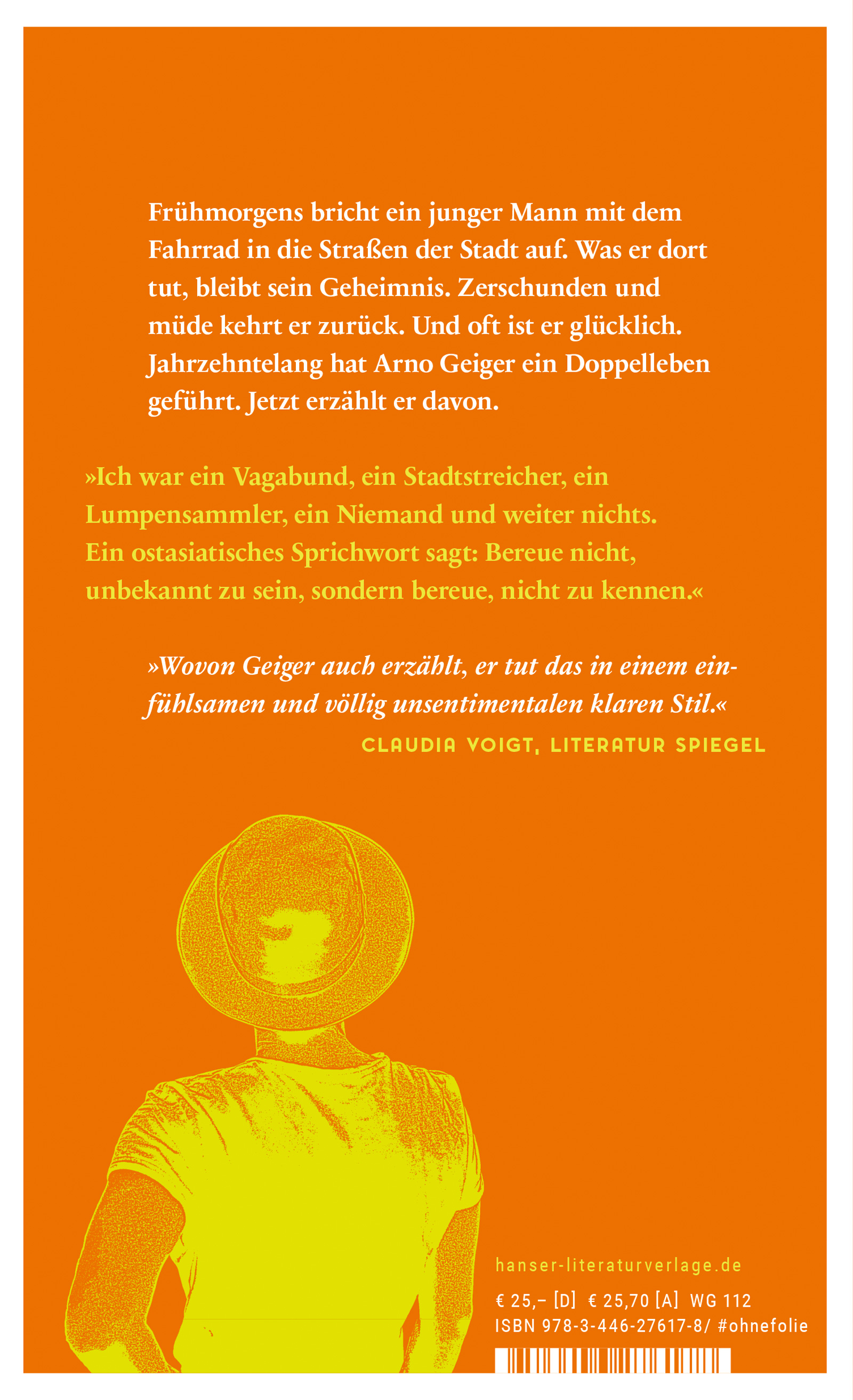 Jahrzehntelang hat Arno Geiger ein Doppelleben geführt. Jetzt erzählt er davon, pointiert, auch voller Witz und mit großer Offenheit. Wie er Dinge tat, die andere unterlassen. Wie gewunden, schmerzhaft und überraschend Lebenswege sein können, auch der Weg zur großen Liebe. Wie er als Schriftsteller gegen eine Mauer rannte, bevor der Erfolg kam. Und von der wachsenden Sorge um die Eltern.