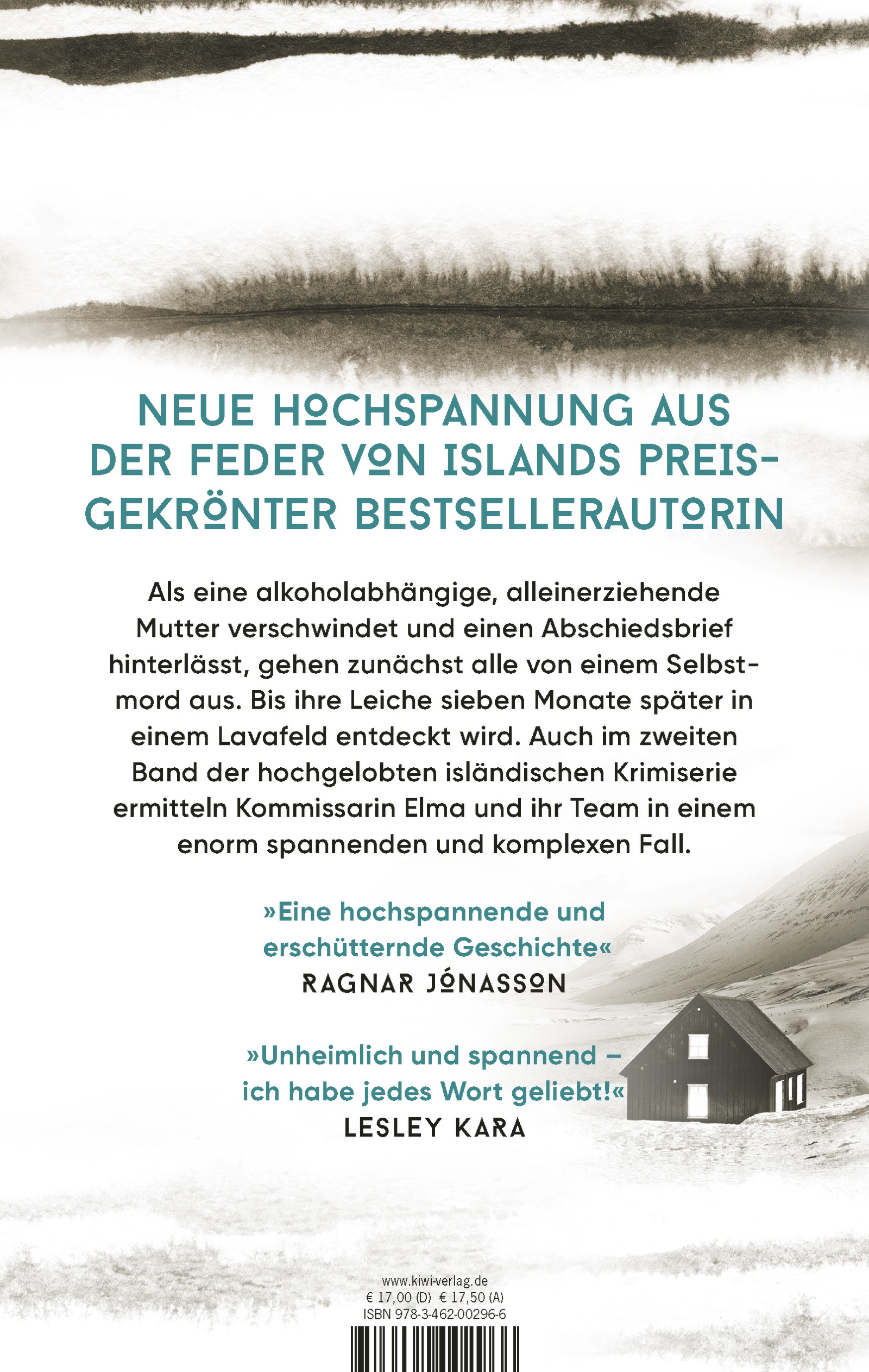 Eigentlich will Kommissarin Elma nach einem persönlichen Schicksalsschlag in ihrer Heimatstadt Akranes zur Ruhe kommen. Doch als Spaziergänger in einem Lavafeld die Überreste einer Frau entdecken, die vor Monaten verschwunden ist, wird sie sofort in einen neuen, erschütternden Fall hineingezogen.