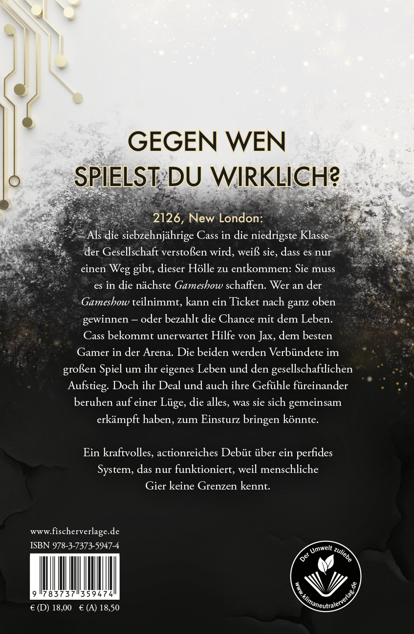 2126, New London: Als die siebzehnjährige Cass in die niedrigste Klasse der Gesellschaft verstoßen wird, weiß sie, dass es nur einen Weg gibt, dieser Hölle zu entkommen: Sie muss es in die nächste Gameshow schaffen. Wer an der Gameshow teilnimmt, kann ein Ticket nach ganz oben gewinnen - oder bezahlt die Chance mit dem Leben. Cass bekommt unerwartet Hilfe von Jax, dem besten Gamer in der Arena. Die beiden werden Verbündete im großen Spiel um ihr eigenes Leben und gesellschaftlichen Aufstieg. Doch ihr Deal und auch ihre Gefühle füreinander beruhen auf einer Lüge, die alles, was sie sich gemeinsam erkämpft haben, zum Einsturz bringen könnte.
