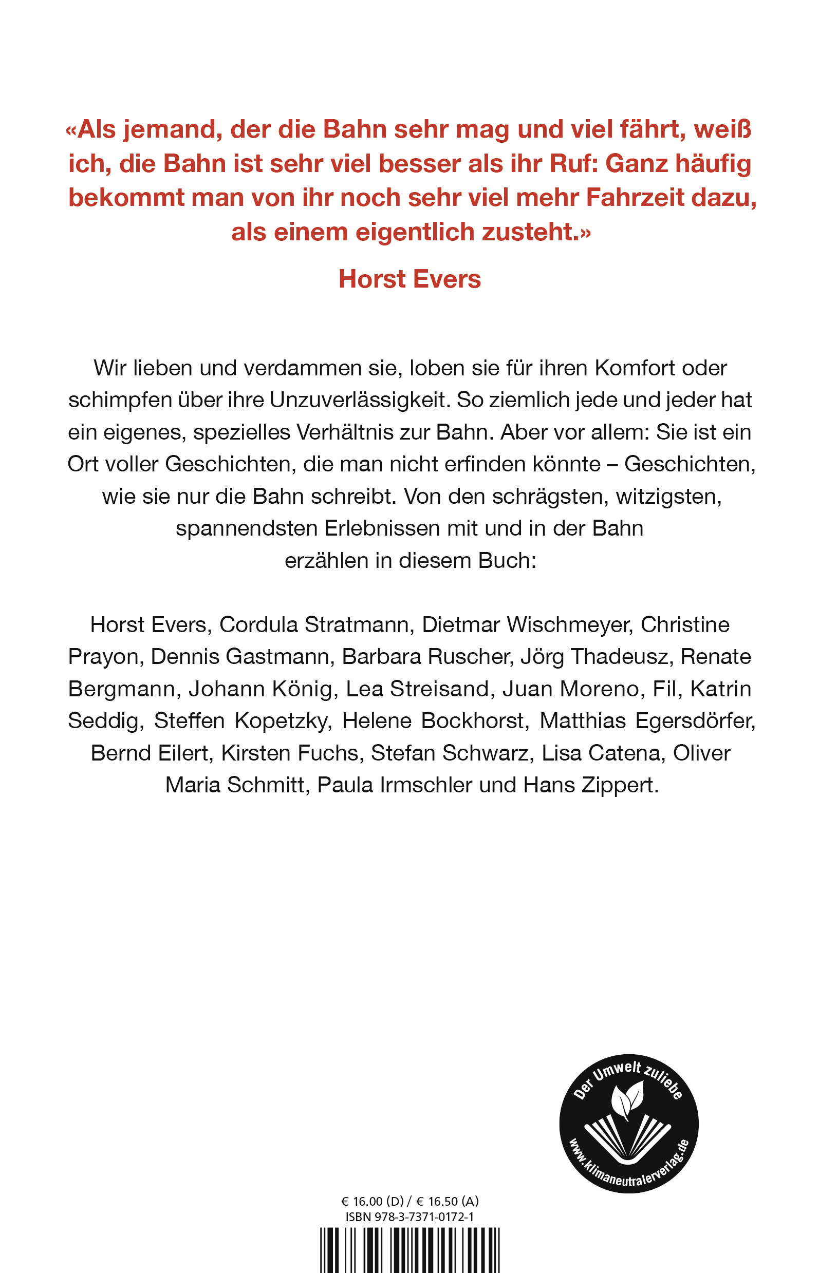 Von alldem lässt sich wunderbar erzählen, und das tun in diesem Buch Autorinnen und Autoren auf herrlich komische Weise. Ein Buch voller Geschichten, die man nicht erfinden könnte - Geschichten, wie sie nur die Bahn schreibt.