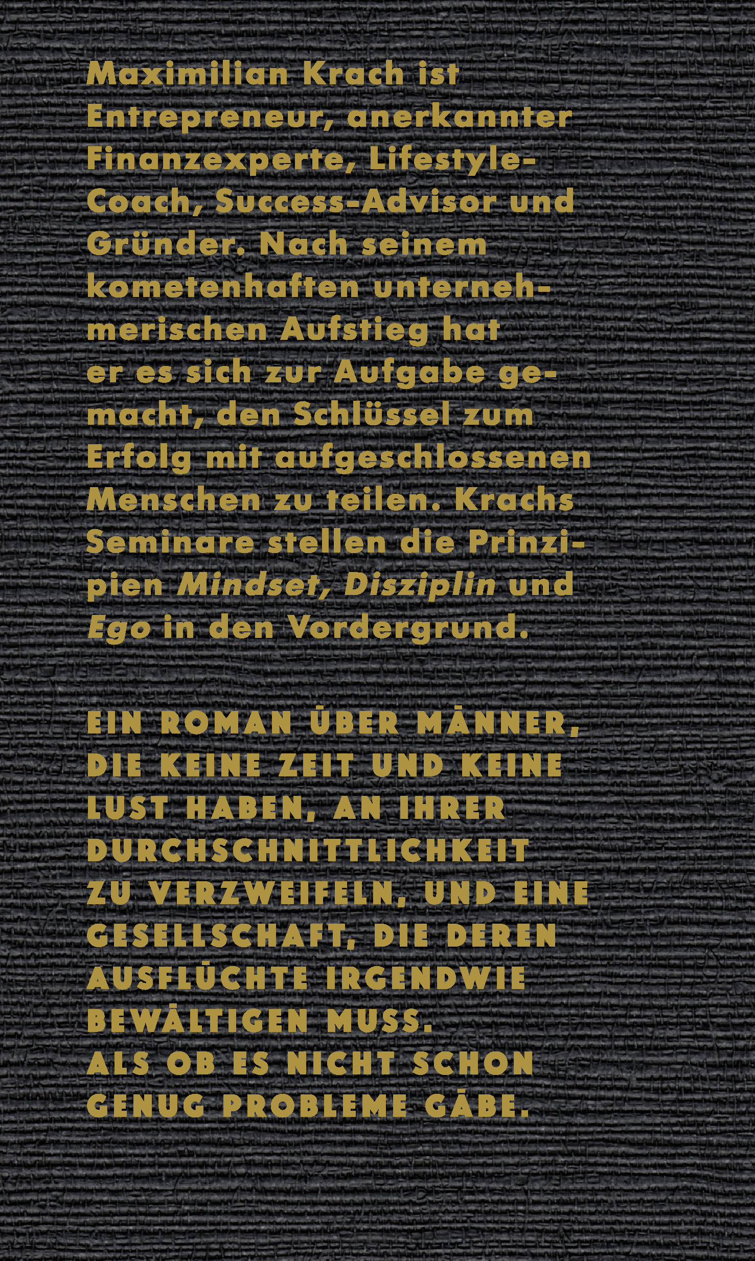 Maximilian Krach hat alles, was sich ein im Internet sozialisierter junger Mann im zweiten Jahrzehnt des 21. Jahrhunderts wünschen kann: teure Uhren, eine amtliche Anzahl Follower, eine so einfache wie geniale Geschäftsidee und einen unerschütterlichen Glauben an die eigene Einzigartigkeit.