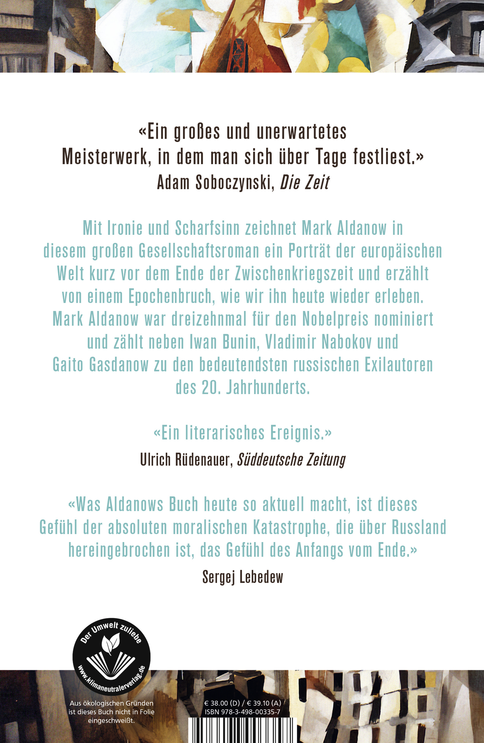 «Was Aldanows Buch heute so aktuell macht, ist dieses Gefühl der absoluten moralischen Katastrophe, die über Russland hereingebrochen ist, das Gefühl des 'Anfangs vom Ende'.» Sergej Lebedew