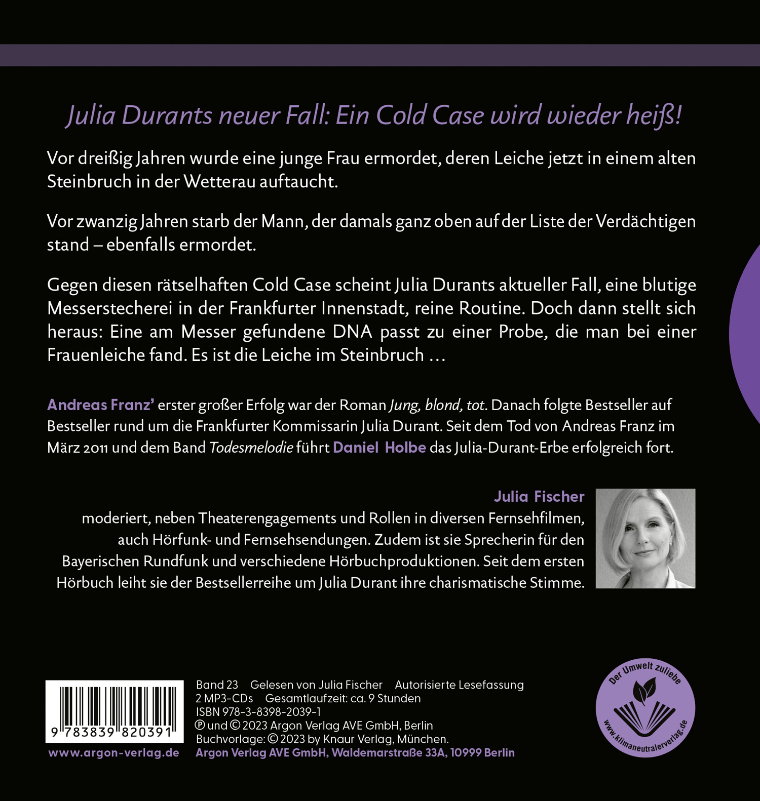 Temporeich und ganz nah an der Realität setzt Bestseller-Autor Daniel Holbe auch im 23. Fall für Julia Durant das Erbe von Andreas Franz fort, der mit seiner Kult-Kommissarin zum erfolgreichsten deutschen Krimi-Autor wurde.
