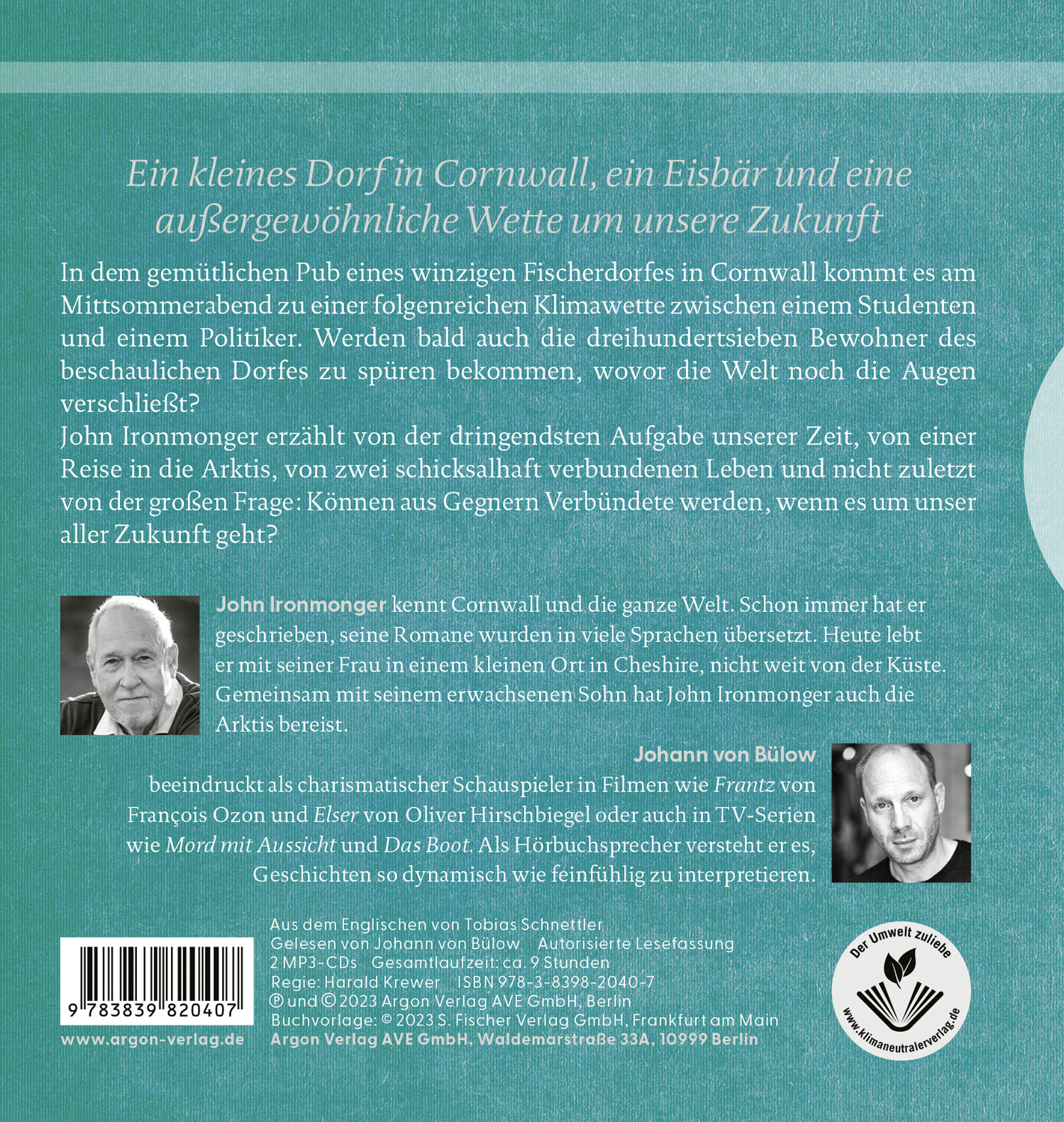 John Ironmonger erzählt von der dringendsten Aufgabe unserer Zeit, von einer Reise in die Arktis, von zwei schicksalhaft verbundenen Leben und nicht zuletzt von der großen Frage: Können aus Gegnern Verbündete werden, wenn es um unser aller Zukunft geht?